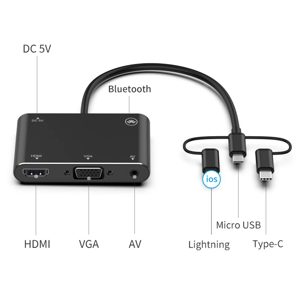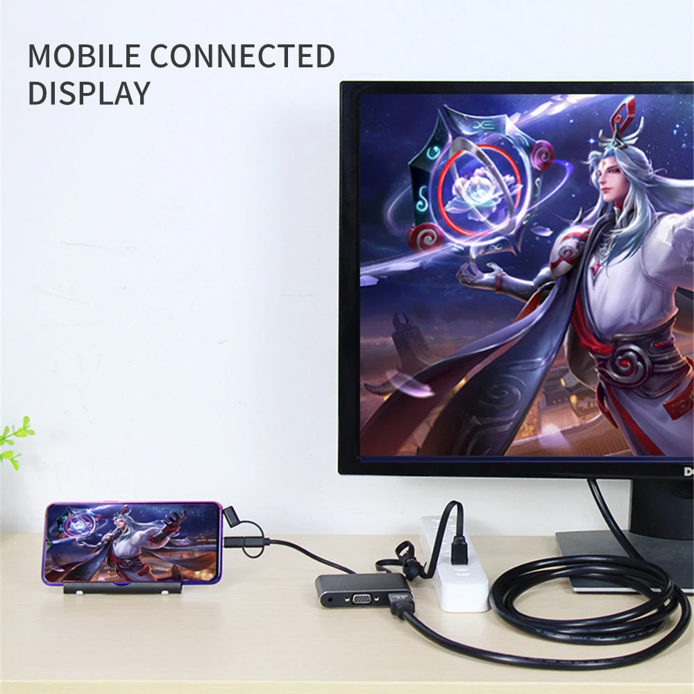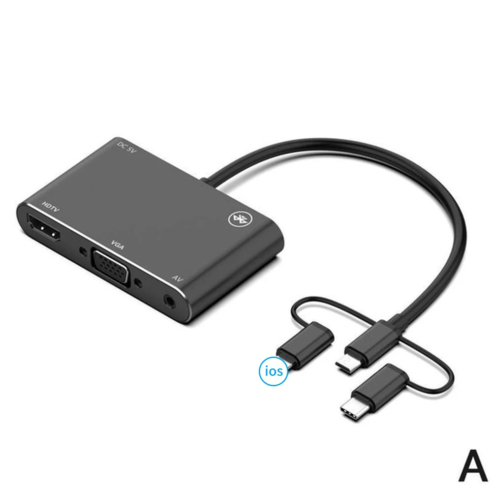 3 в 1 VGA HDMI адаптер кабель проекционный экран адаптер для IPhone 11 Pro Max XS XR для huawei P20 P30 IOS type C Android к ТВ 35