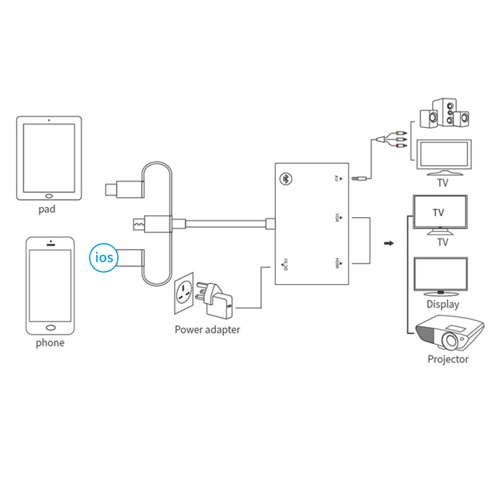 Новая функция: с bluetooth дизайном, может передавать ваш телефон аудио на телевизор через функцию bluetooth, решена головная боль Проблема с аудио, которая для других производит, которые не могут синхронизировать аудио после экрана mirroing android телефон к телевизору