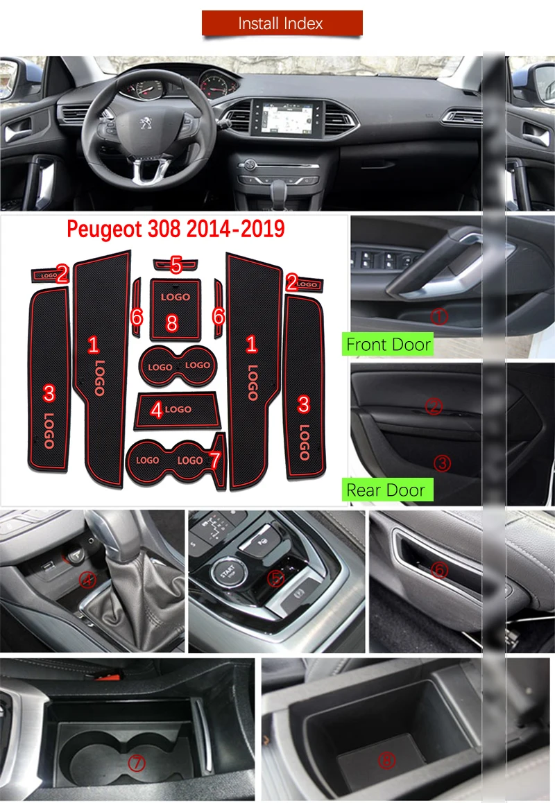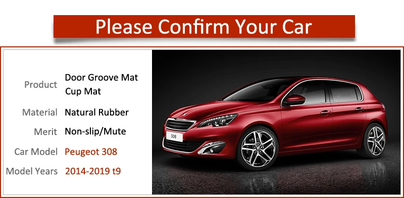 Аксессуары для Peugeot 308 T9 2014 2015 2016 2017 2018 2019 второе поколение автозапчастей для Peugeot 308 T9 2014 2015 2016 2017 2018 2019 материал второго поколения: резина особенность: Простая установка, без каких-либо инструментов Примечание: Из-за того, что светильник отличается, возможно, фотографии в описании будут отличаться от реальных цветов. Любые неудобные, искренне надеемся на ваше понимание. Пожалуйста, проверьте размер чашки вашего автомобиля перед покупкой. Спасибо. 13 шт./компл.