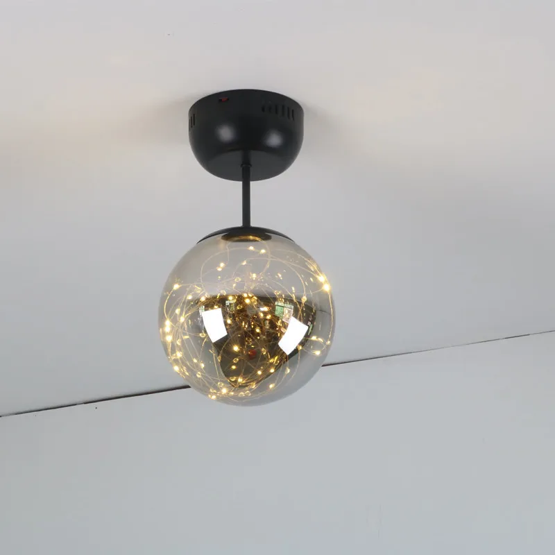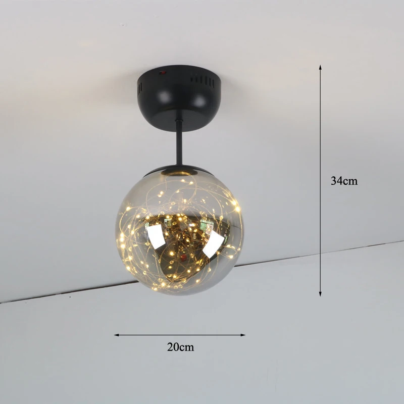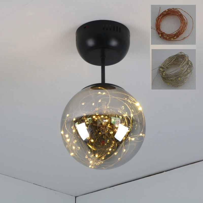 Тип изделия: потолочный светильник Материал: железо + стекло Цвет: матовый черный + дымчато-серый/Янтарное стекло Размер: D20 * h34 см Источник света: 15 Вт светодиодная гирлянда, в комплекте Напряжение: 110 В/220 В