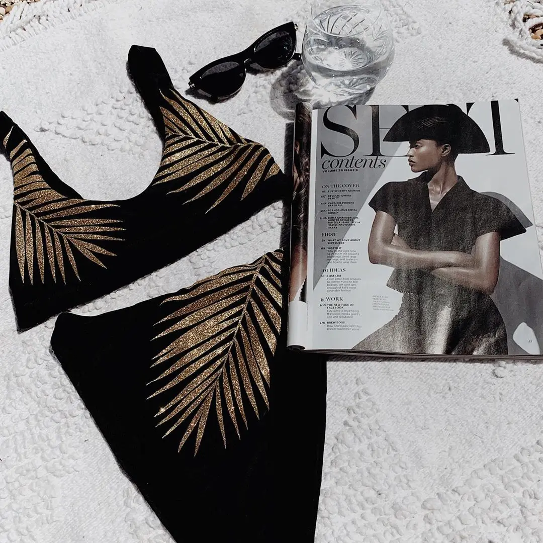 Микро Бикини 2020 с принтом в виде золотых листьев, женский купальник с высоким вырезом, черный купальный костюм, пляжная одежда для плавания, женская одежда для плавания, однотонный черный бикини Особенности: бикини 2020 mujer,maio feminino praia