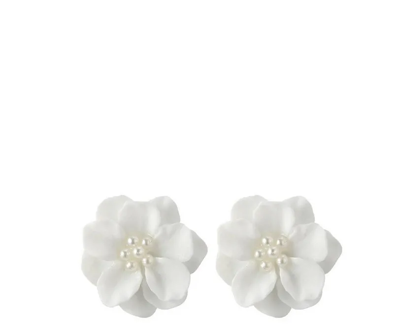Милые серьги-гвоздики с белым цветком и жемчугом, модный дизайн