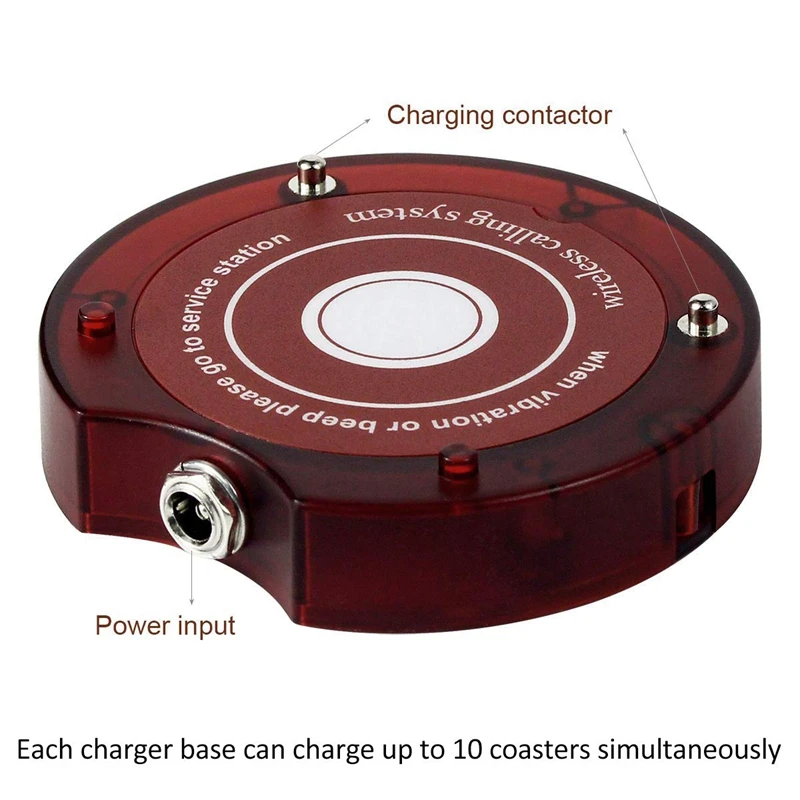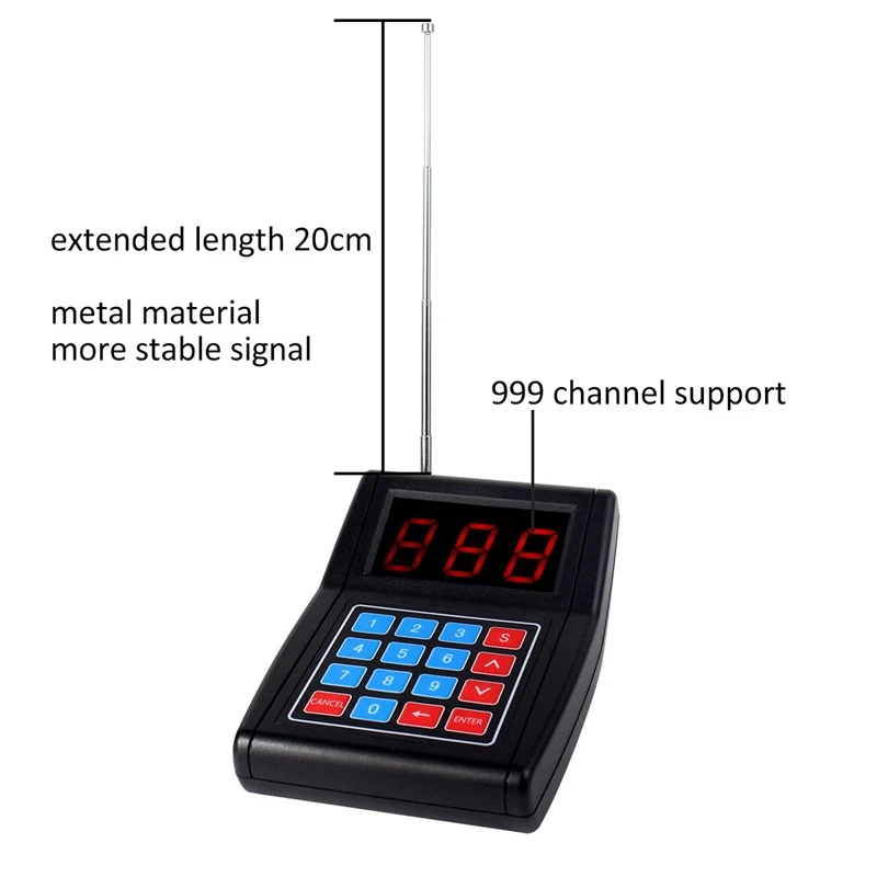 Supports 999 pages: 10 coaster pagers for more customers. Learn the code registration mode, you can randomly change the phone number from 1 to 999. One transmitter can connect up to 999 coasters, you can add more pagers to the system as your business grows
