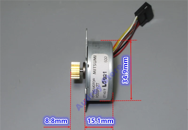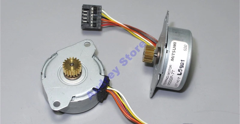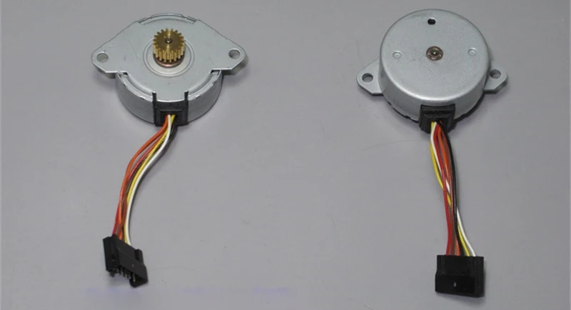 Угол шага двигателя: 7,5 градусов, Поверните на 48 шагов, Фазовое сопротивление: 120 Ω, Средних размеров, Промежуточное сопротивление: 60 Ω, Вес двигателя: 62 г Мотор с 18 зубчатой медной передачей, Модуль: 0,5, Диаметр вала двигателя: 2 мм, Длина вала: 7 мм