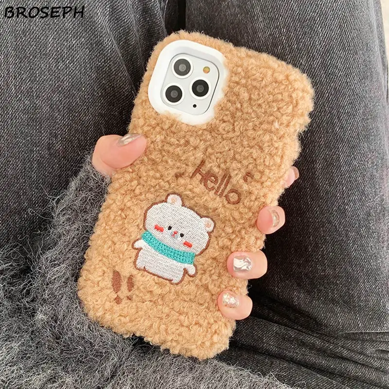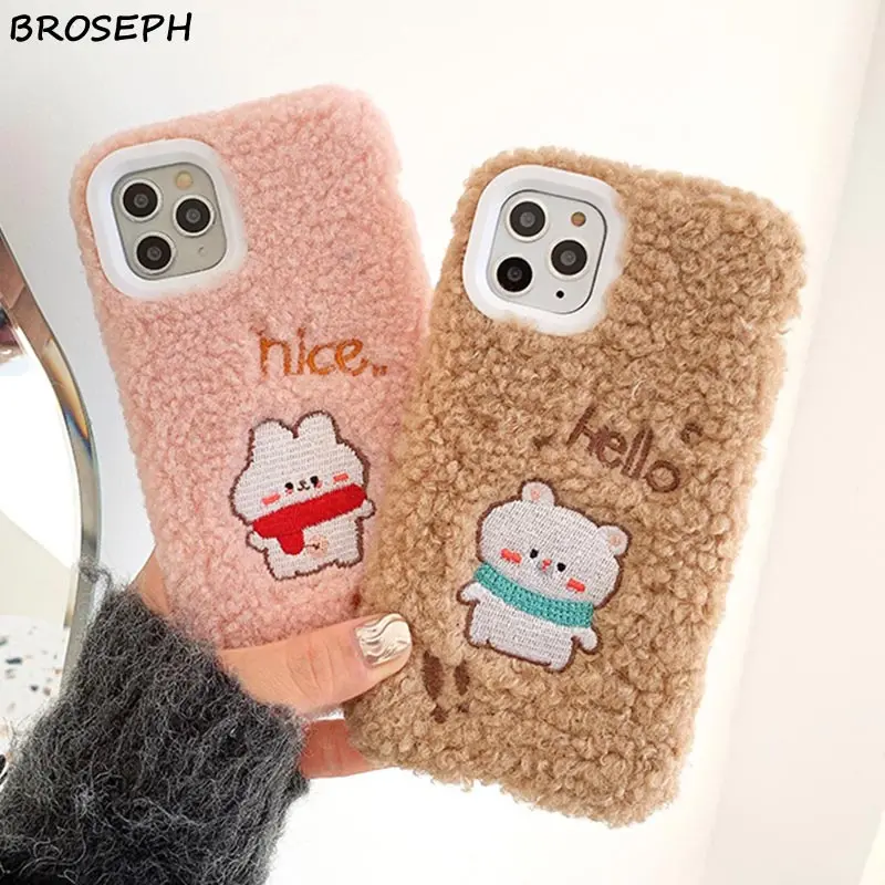 Для iphone 11 Pro Max чехол милый 3D вышитый шарф медведь теплый плюшевый Чехол Мягкий ТПУ чехол для iphone 6 6 S 7 8 Plus X XR XS MAX