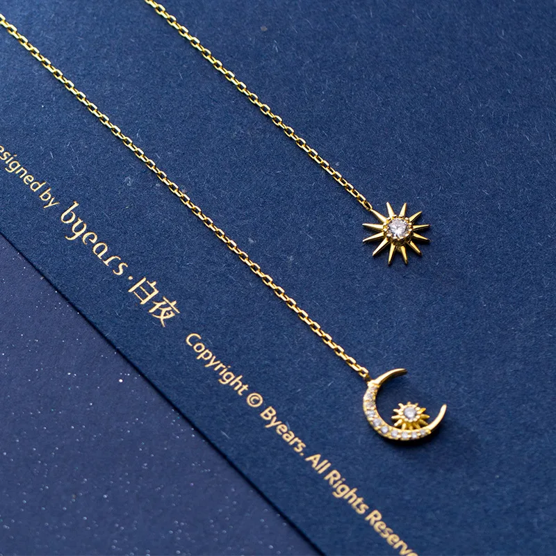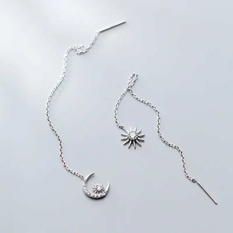 Товар TyPE: 925 серебро Асимметричный кубический циркон солнце и луна серьги-нити золото Цвет Длинная цепочка Висячие серьги для женщин, ювелирные изделия для женщин