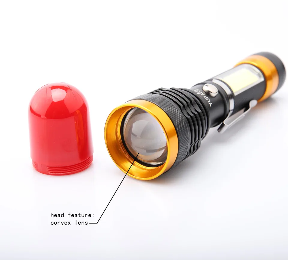 ♣Название продукта: многофункциональный зум-фонарик T6 + COB ♣Материал: алюминиевый сплав ♣Светоизлучающий элемент: T6 + COB ♣Люмен: 800 лм ♣Режимы: 4 ♣Батарея: 1*18650 батарея (не входит в комплект) ♣Особенность: micro USB ♣Вес продукта: 158 г