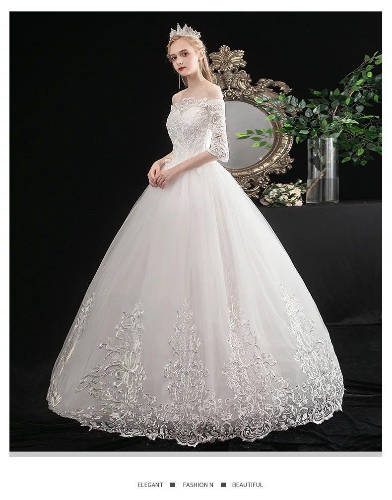 Реальные невесты Ретро стиль круглый вырез бальное платье одежда с длинным