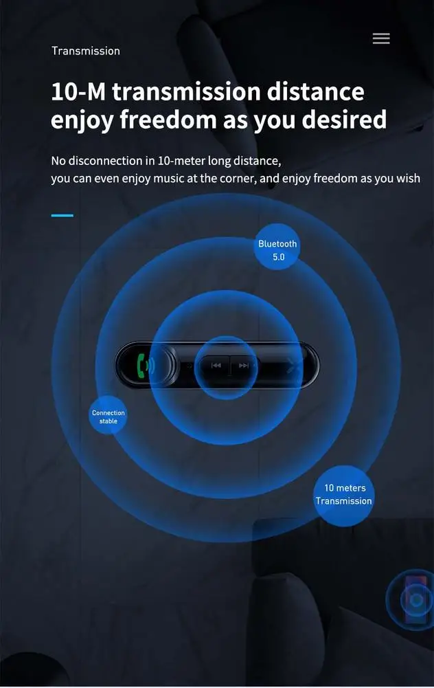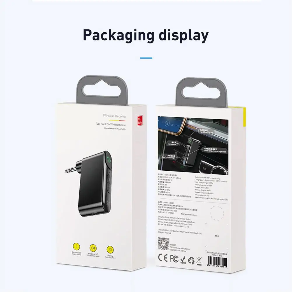 1. Bluetooth адаптер предназначен для не-bluetooth car/домашней стереосистеме с 3,5 мм порт aux.2. Музыкальный праздник: используется технология Bluetooth 5,0 для обеспечения более устойчивой и быстрой передачи с меньшим энергопотреблением, что обеспечивает превосходную производительность звука, чтобы портить уши и никогда не ощущать скуку во время вождения.3. Наслаждайтесь музыкой и навигацией одновременно. 10 часов работы от батареи, 120 часов в режиме ожидания, а также поддерживает воспроизведение во время зарядки.4. Автомобильный адаптер Bluetooth разработан с физическим включением/выключением и гуманизированной расширенной кнопкой громкости/дорожки сбоку для быстрого и удобного управления, чтобы вы могли говорить и прослушивать руки.5. Широкая совместимость ресивера: передача стереозвука беспроводным образом через большинство домашних аудиосистем, систему автостерео и проводные наушники с устройств, поддерживающих Bluetooth, таких как смартфоны, планшеты, mp3-плееры и т. Д.6. Встроенный микрофон для более безопасных звонков во время вождения: просто нажмите кнопку ответа, чтобы ответить или повесить телефонные вызовы во время вождения.Параметры:Тип: 3,5 мм интерфейса aux кабель для автомобиля/дома Bluetooth аудио адаптерВерсия Bluetooth: 5,0Дальность передачи: 10 мВремя использования: 10 часовВремя в режиме ожидания: 120 часовИнтерфейс: USB2.0 micro/3,5 мм auxВес нетто: около 50 гЕмкость для хранения: без памятиЦвет: черныйУпаковочный лист:1 * Автомобильный Bluetooth адаптер1 * зарядный кабель 1 * Руководство по эксплуатации