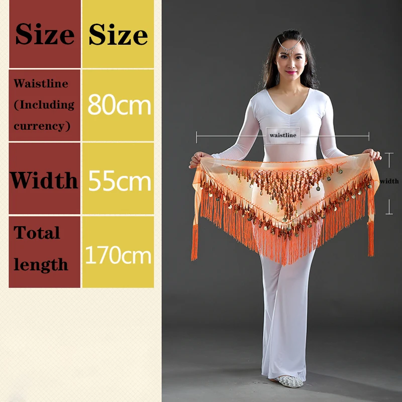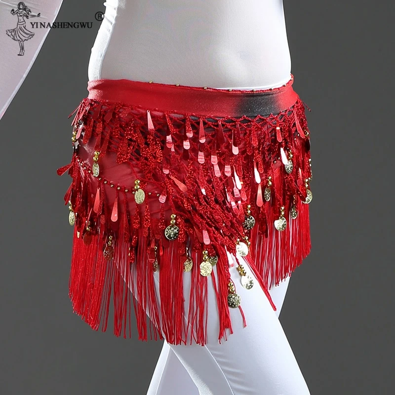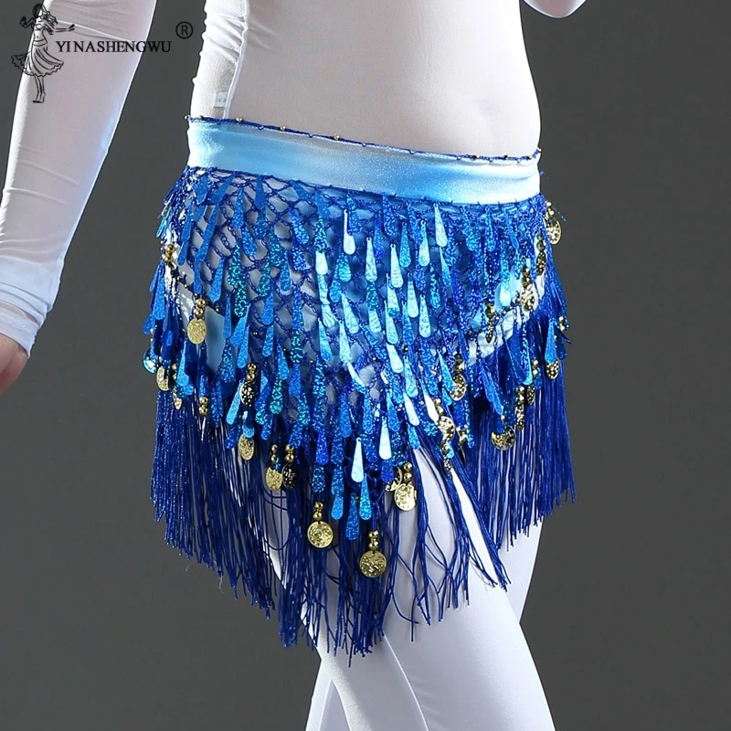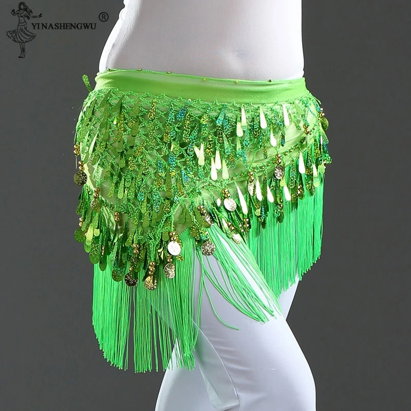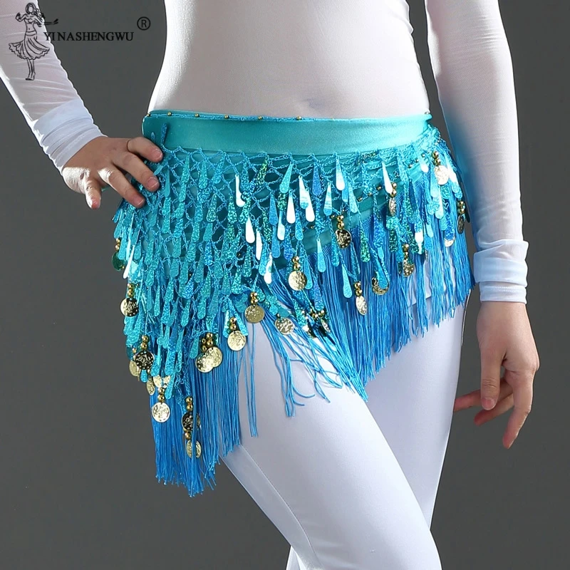 Женский пояс для живота аксессуары для танцевальной одежды, каплевидные пайетки накидка с бахромой, эластичная основа, треугольный пояс, монеты, набедренный шарф 9 видов цветов