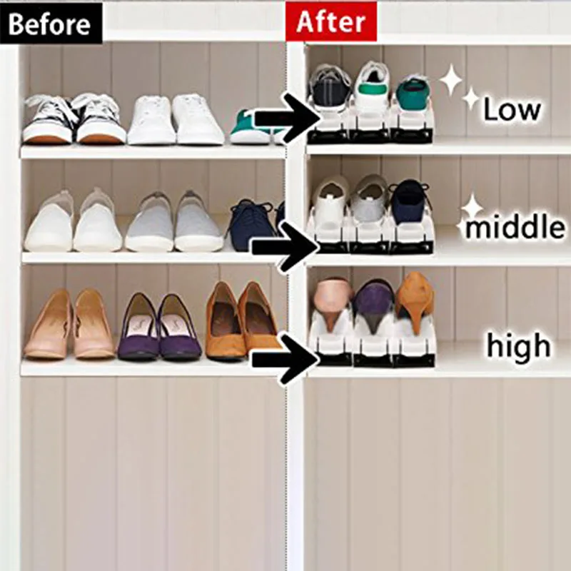 Модернизированная 3-уровневая Регулируемая по высоте стойка для обуви-вы можете регулировать высоту слотов для обуви в соответствии с размером обуви в 3 шага. Может использоваться в различных типах обуви для мужчин и женщин; Для подростков; Для мальчиков и девочек; Для маленьких детей