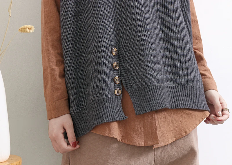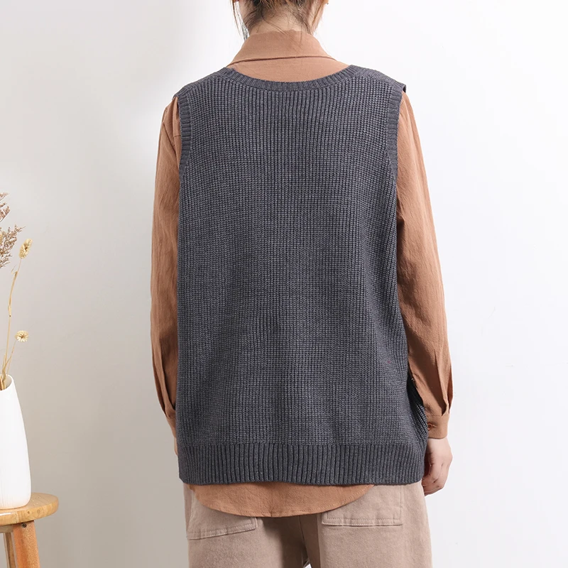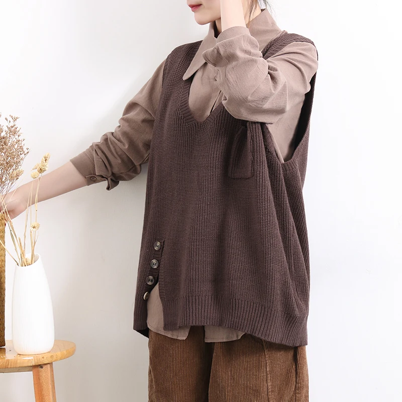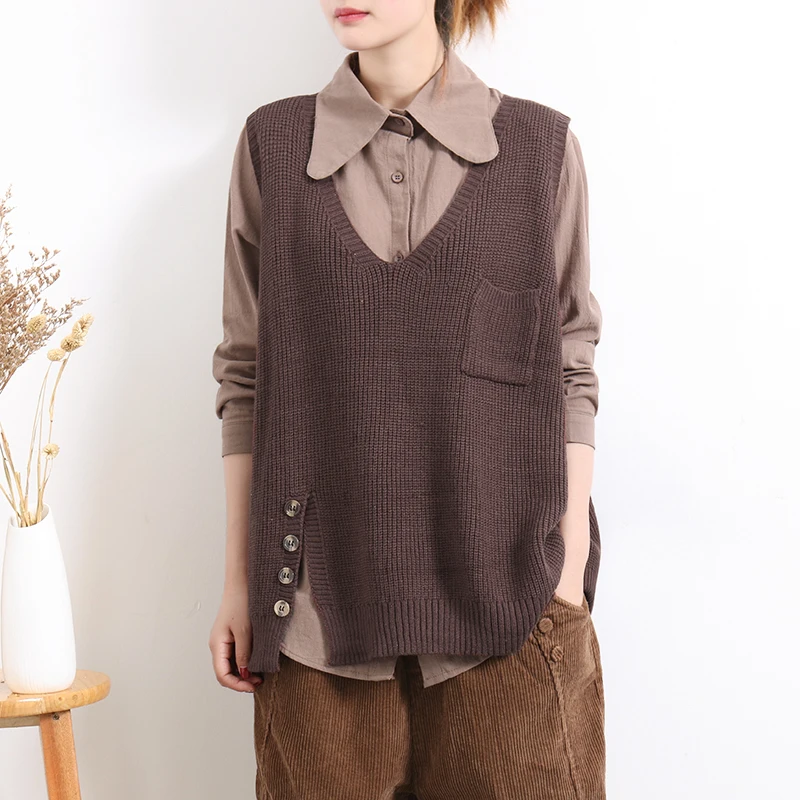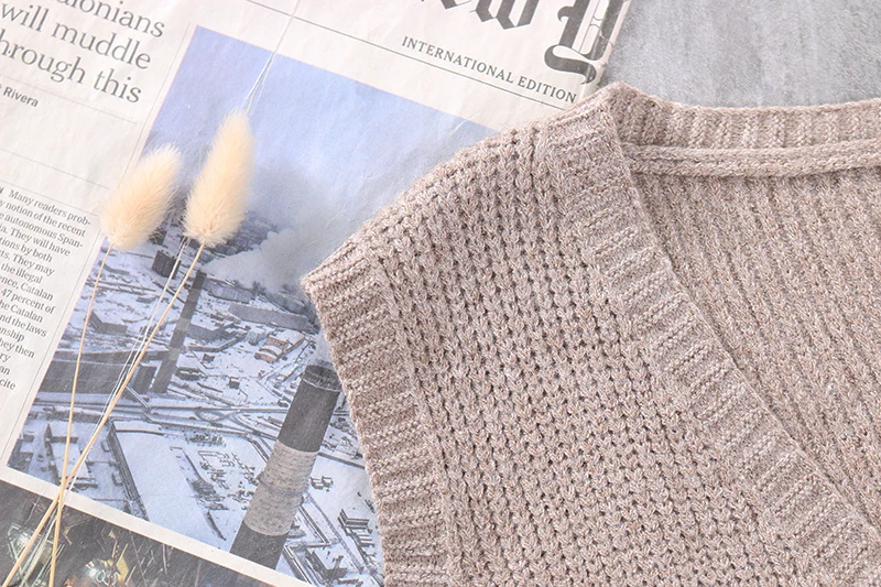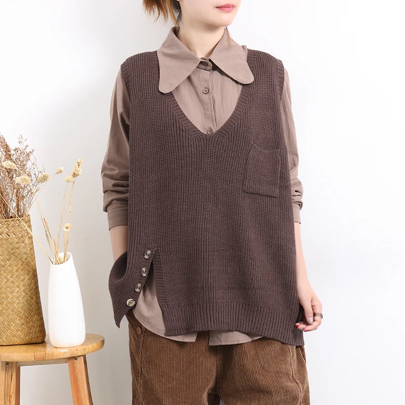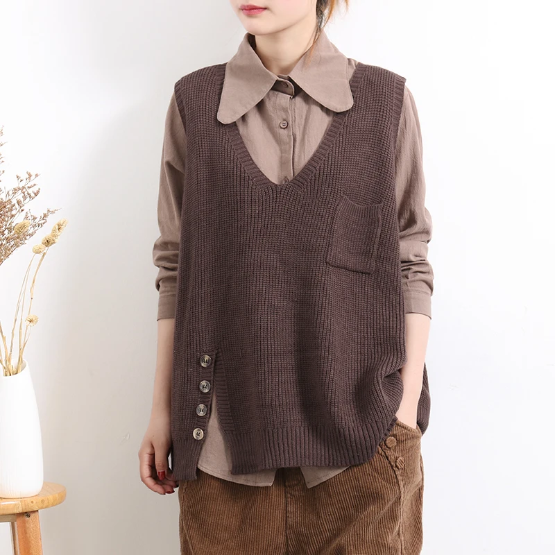 Женский свитер без рукавов, весенне-осенний свободный Однотонный пуловер с v-образным вырезом и карманами, 2020
