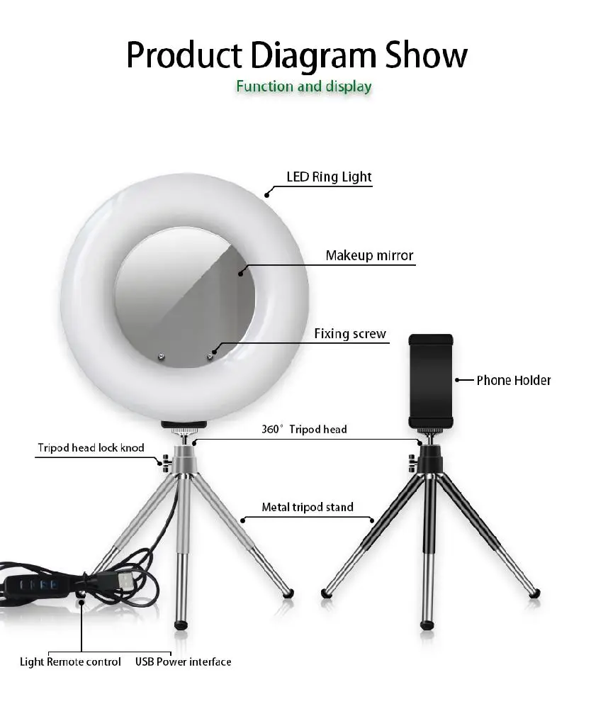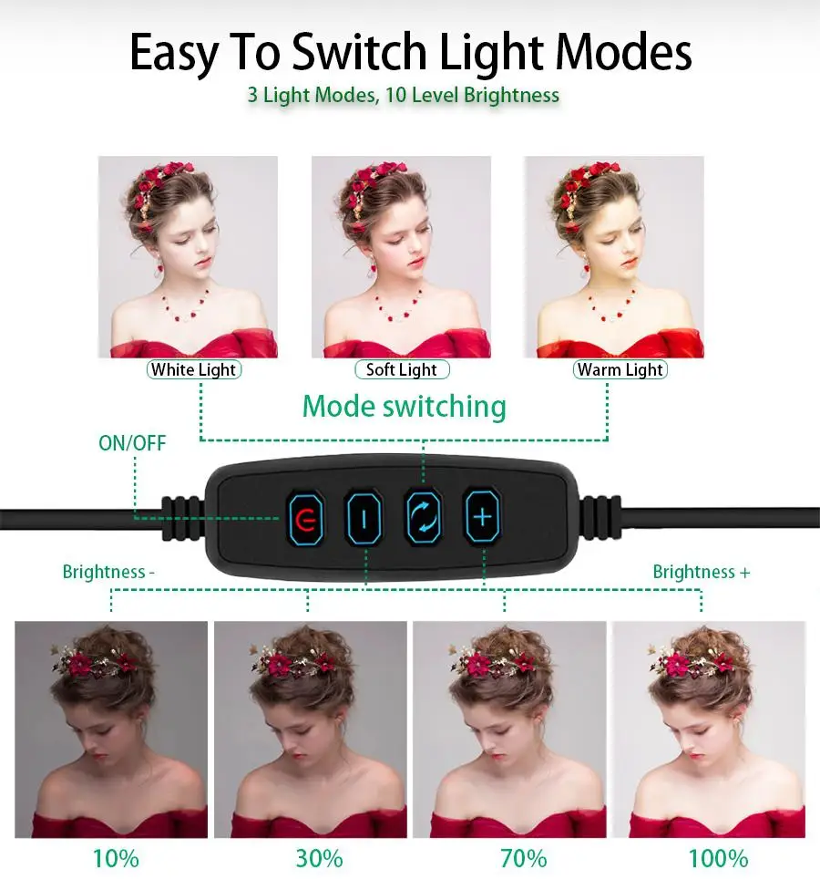 Диммируемый 9 "светодиодный SMD кольцевой светильник с широким диапазоном затемнения от 1% до 100%.
