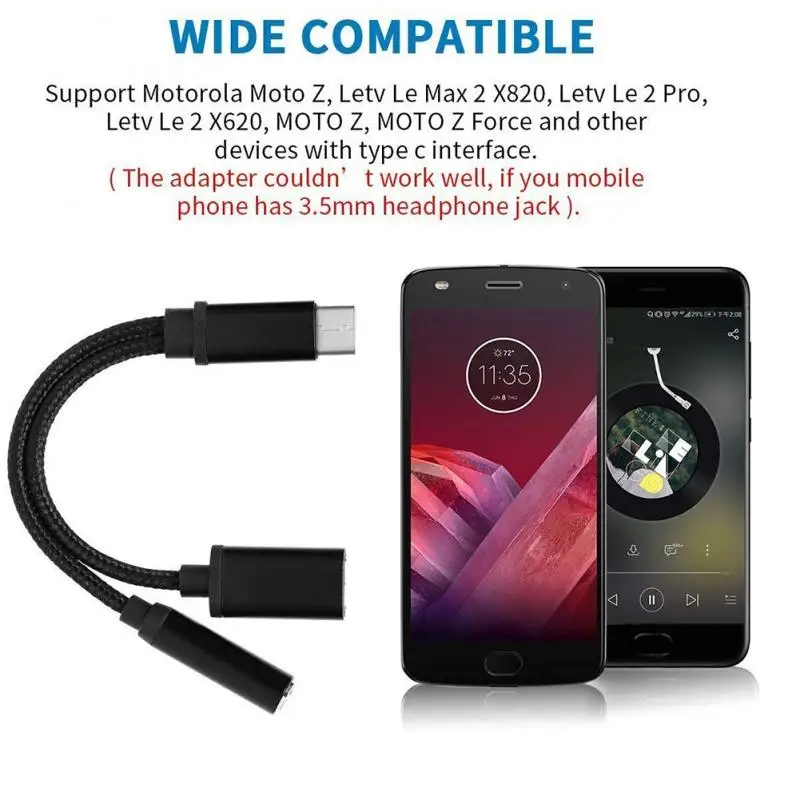 Поскольку у нас нет для наушников на Moto Z, mvpone Тип C до 3,5 мм адаптеру головного телефона предназначена для того чтобы позволить пользователей Moto Z может держать при помощи своих наушников