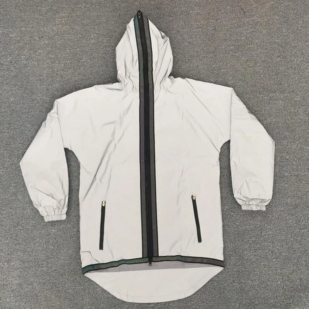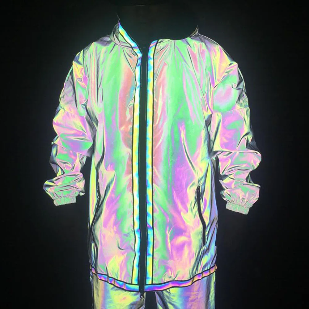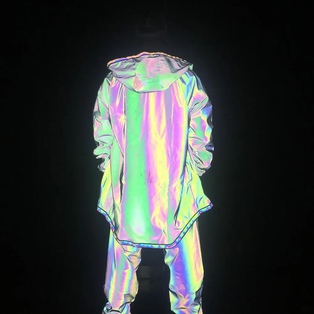 Мужские светоотражающие куртки, цветные светоотражающие Длинные куртки, Повседневная ветровка, Мужская водонепроницаемая куртка, пальто для мужчин в стиле панк, хип-хоп
