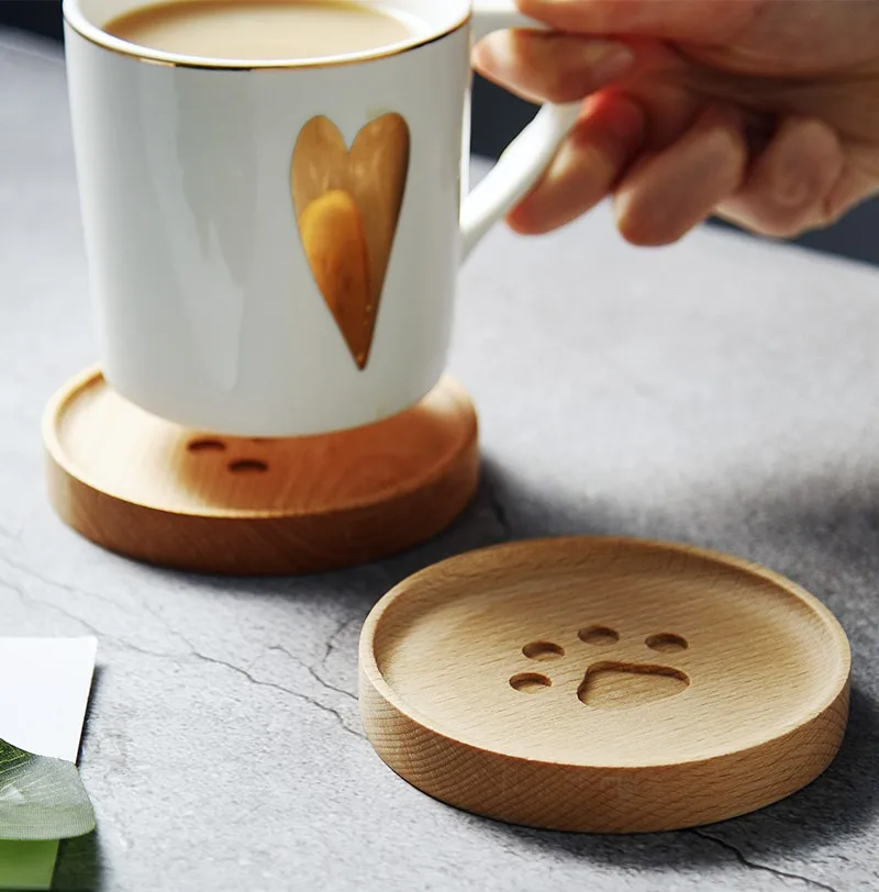 1 шт., милая чашка, подставка под кружку, деревянная подставка для напитков, маленький круглый стол, обеденный стол, столовые приборы, деревянные кухонные гаджеты, аксессуары для стола
