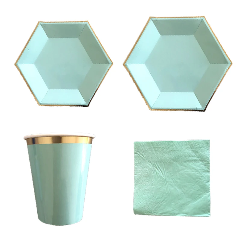 64 шт./компл. зеленый одноразовая посуда Бумага пластина салфетка для чашек для День рождения, товары для свадьбы Карнавальный костюм для рождественской вечеринки декор