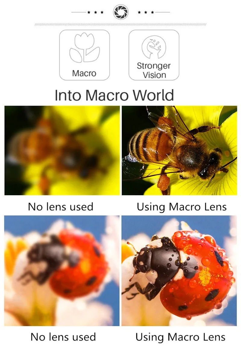 Название: макрообъектив 25X HD Макро Увеличение: 25x Диапазон фокусировки: 2 см-5 см Материал: импортное стекло, алюминиевый сплав, АБС-пластик Подходящие модели: подходят для 98% смартфонов