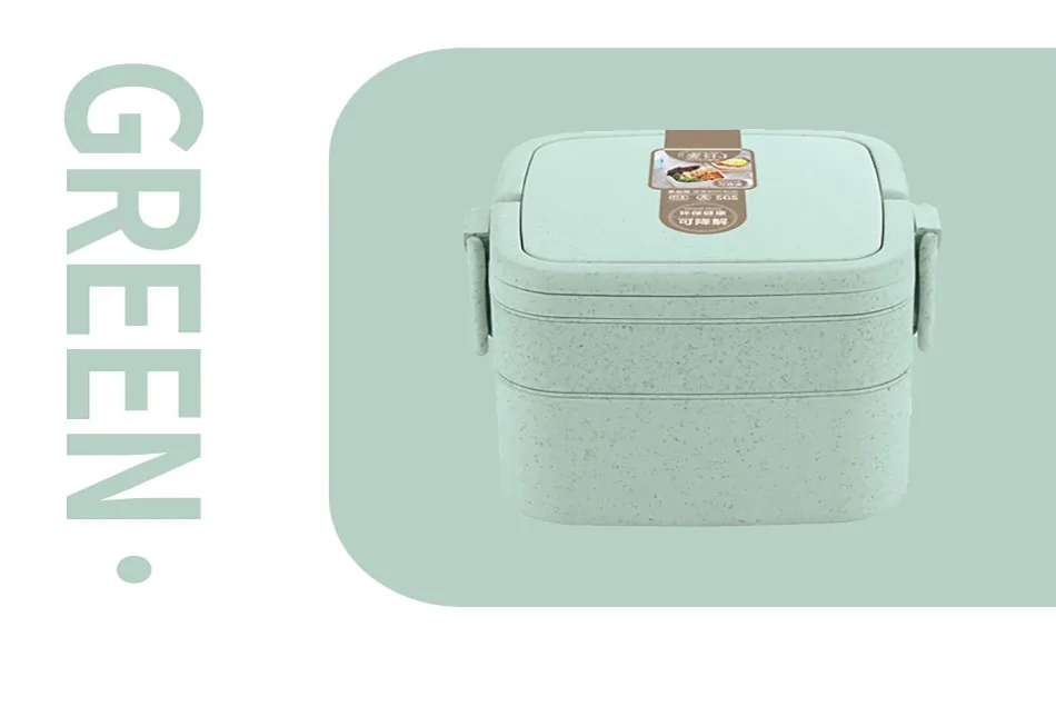 ONEUP портативная соломенная медицинская 2-слойная коробка Bento, многослойная коробка Bento с столовыми приборами, может нагревать пищевые контейнеры в микроволновой печи