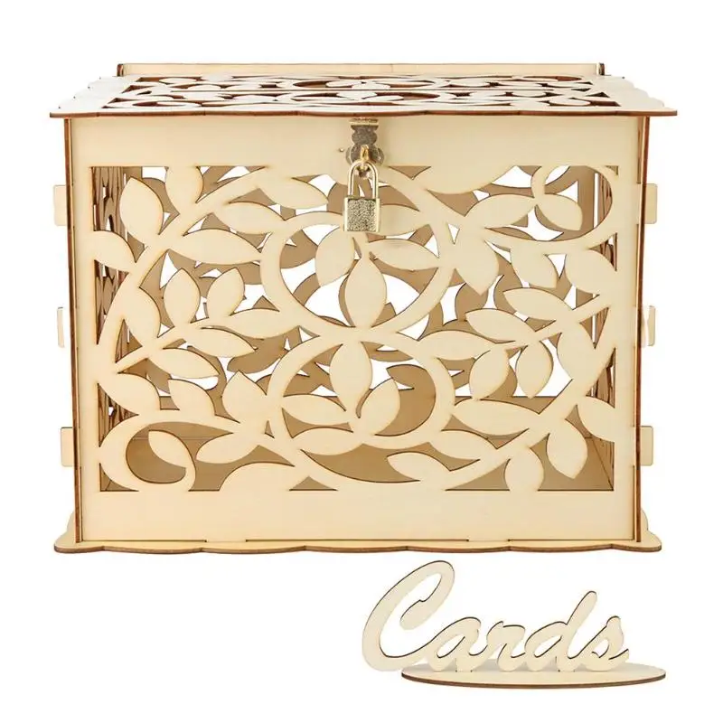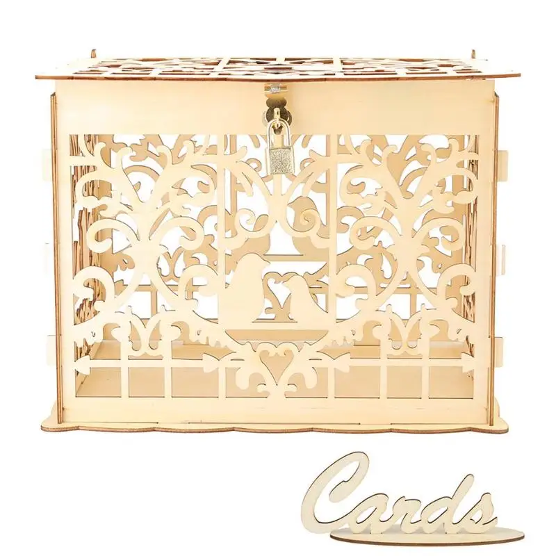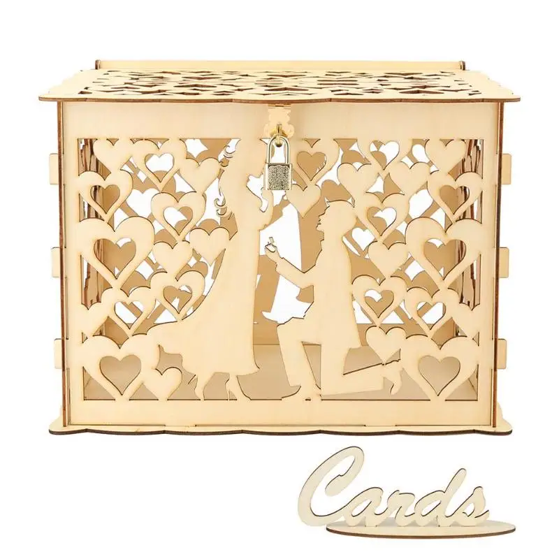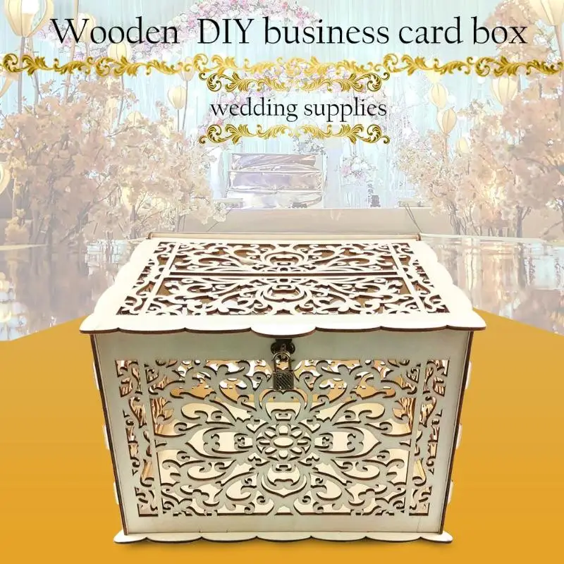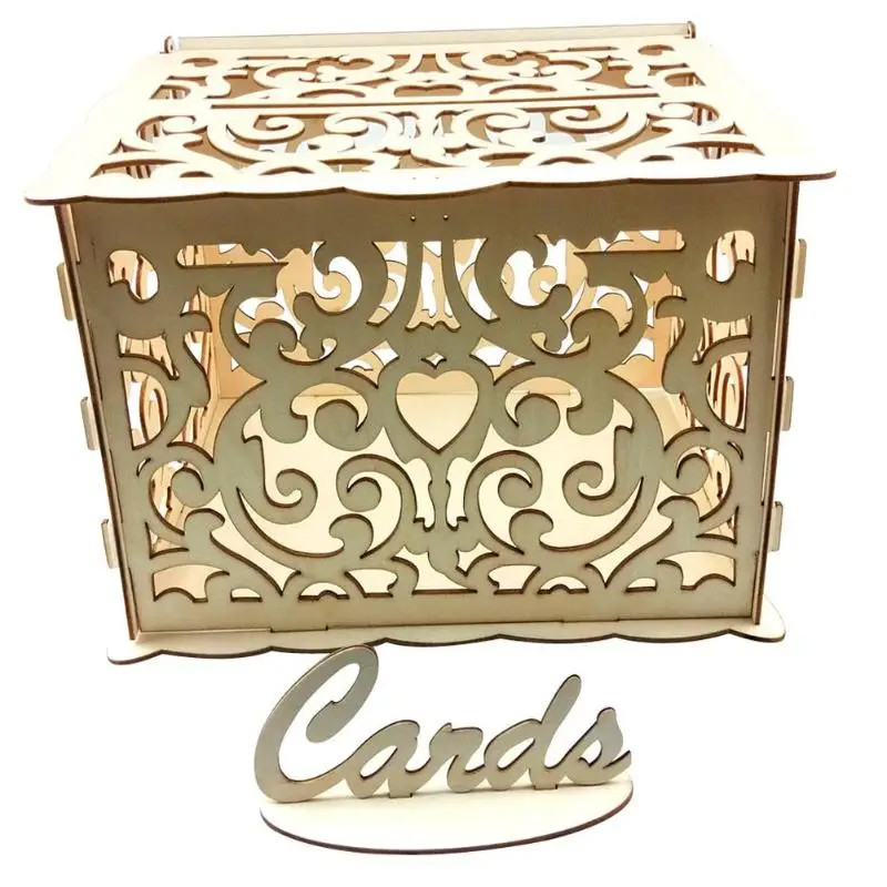 1 шт. DIY Подарочная коробка для свадебных карт деревянная пустотелая резная денег