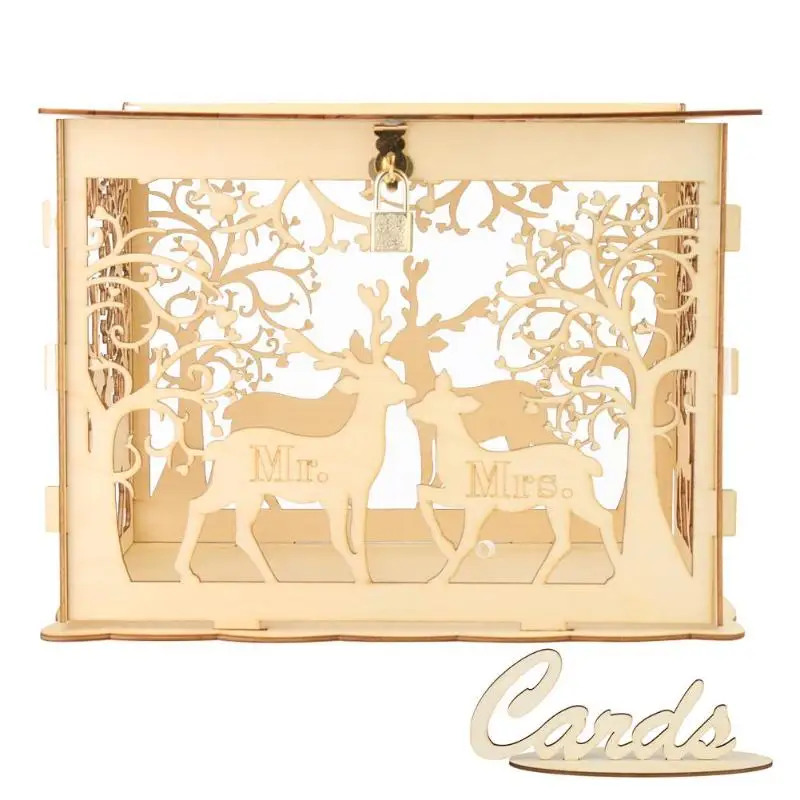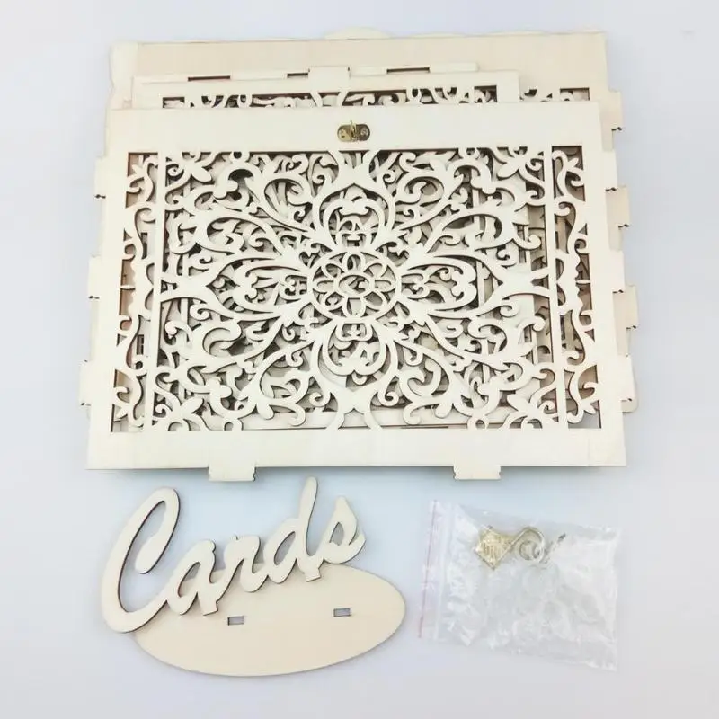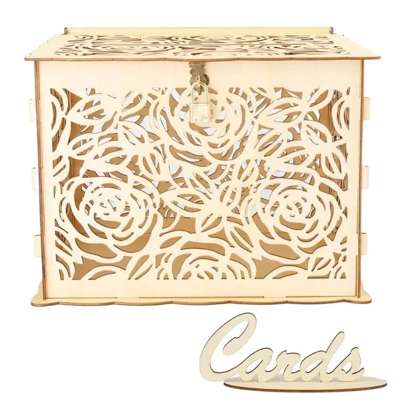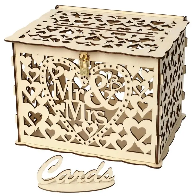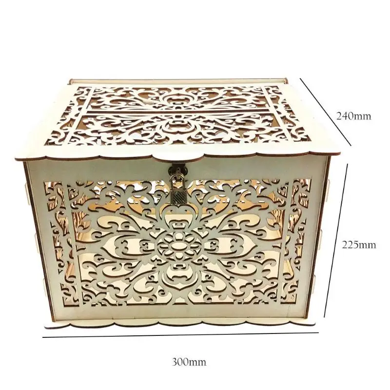 1 шт. DIY Подарочная коробка для свадебных карт деревянная пустотелая резная денег