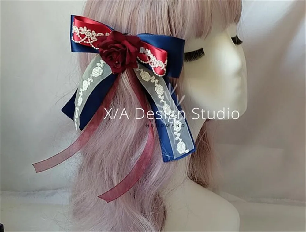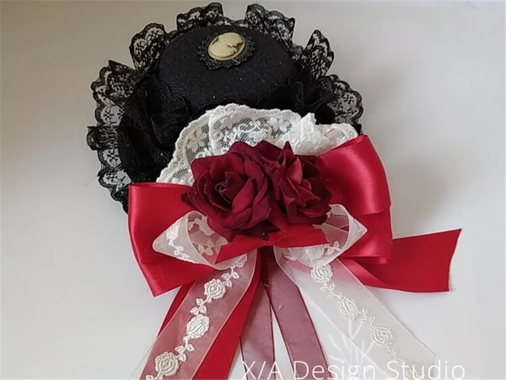 Готическая заколка в Стиле Лолита кружевная черная шляпа с бантом головной убор шпилька Лолита KC аксессуары B784