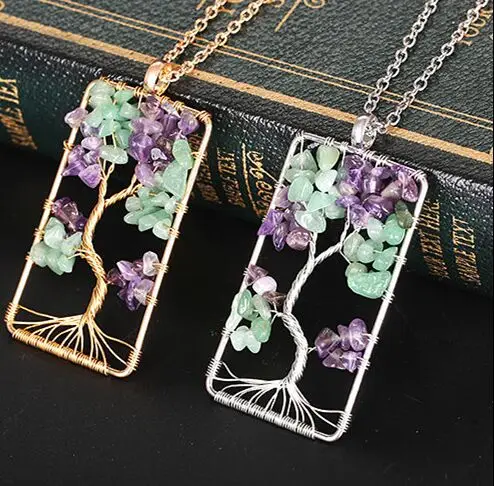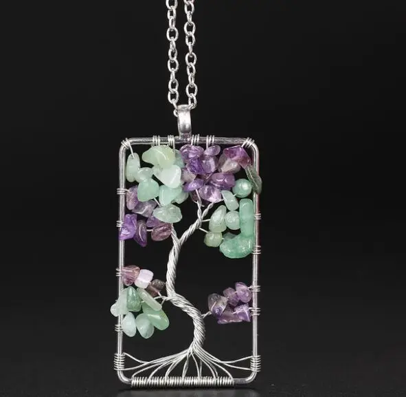 Древо жизни чакра 7 цветов кулон Цепочки и ожерелья ювелирных изделий Семья подарок провода исцеления энергии Рейки баланс камень
