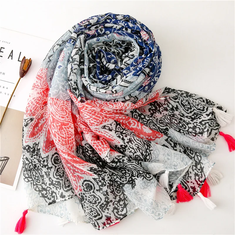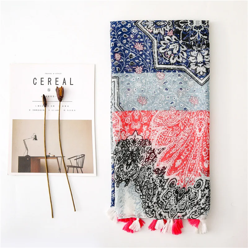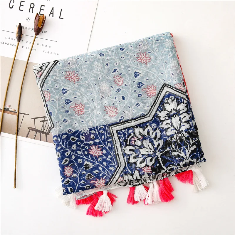 Женский шарф-пашминовый палантин в богемном этническом стиле, мягкий шарф с цветочным принтом, длинные шали и накидки с кисточками, новинка 2019
