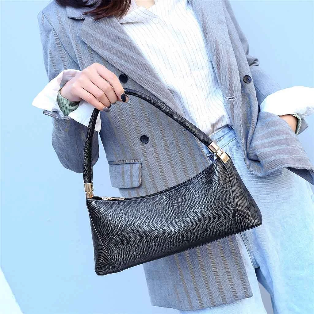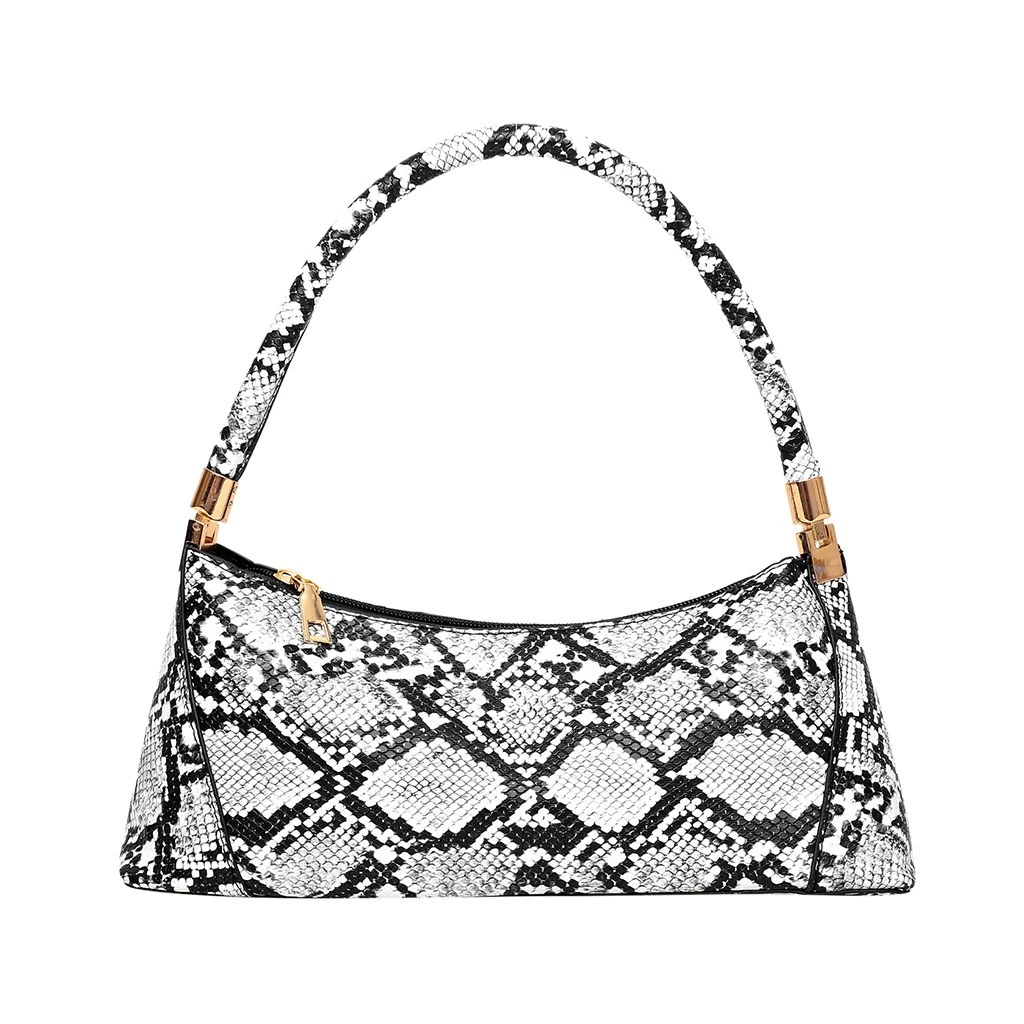 Дамская змеиная сумка-багет с узором, модная простая сумка, повседневная сумка на плечо