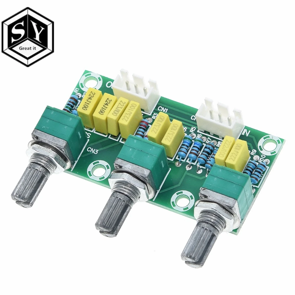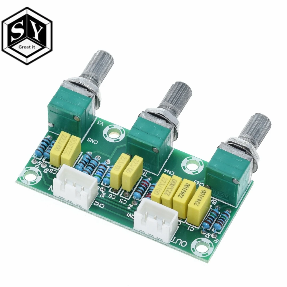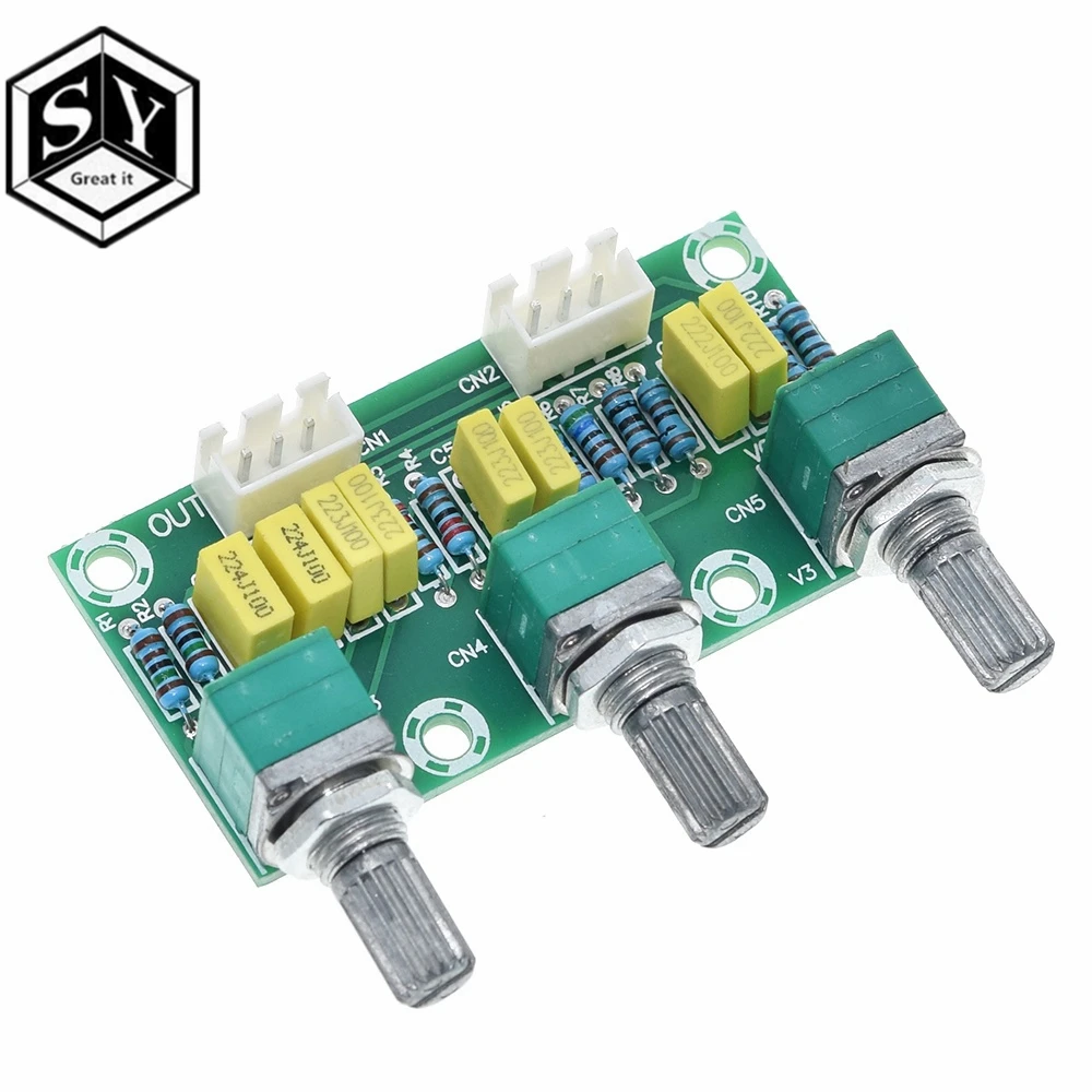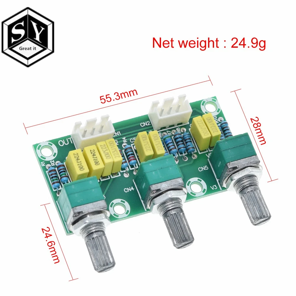 Эта версия настройки пассивной тюнинговой платы, основная функция входного аудиосигнала для регулировки высокой и низкой частоты, а затем отправляется на плату усилителя для увеличения Принцип продукта заключается в том, что звуковой сигнал непосредственно фильтруется через Радиоуправляемый фильтр, чтобы получить желаемый высокий и низкий звук через Радиоуправляемый конденсатор. Tone board не нуждается в источнике питания, но объем после обработки будет намного меньше. Параметры Название продукта: пассивная tone board Регулируемые элементы: общий объем высоких басов Количество каналов: 2-х канальный Ручка интервал: 22,5 мм Тип разъема: XH2.54 ~ 3P Размер внешнего вида: 56,28 мм