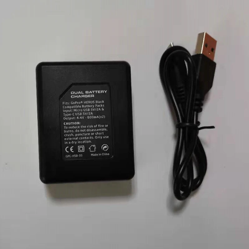 Зарядное устройство с двумя портами для GoPro Hero 8, 7, 6, 5, черная камера с usb-кабелем, аксессуары для Go Pro, Hero 8