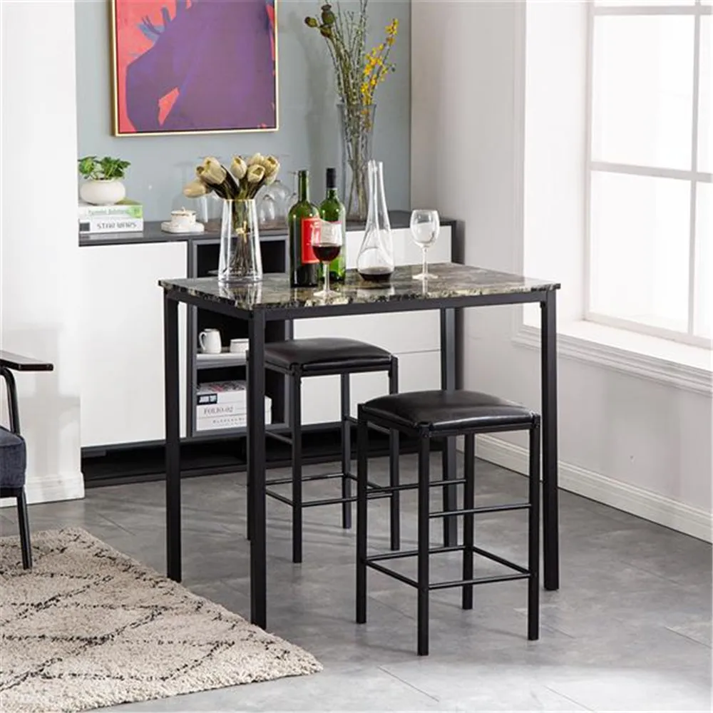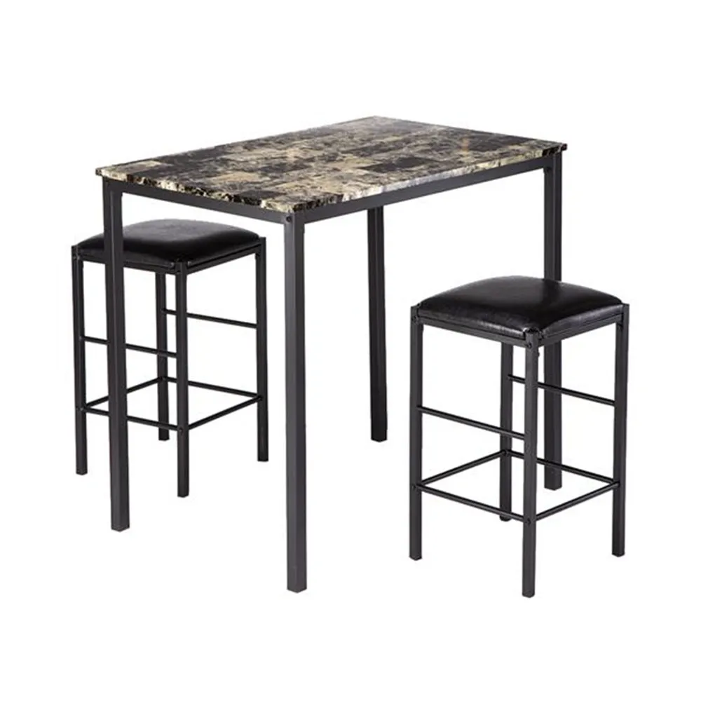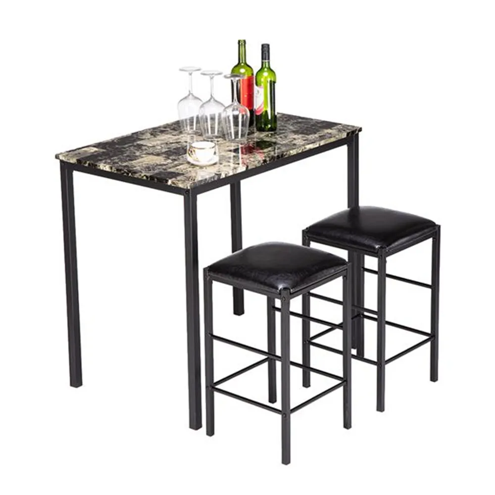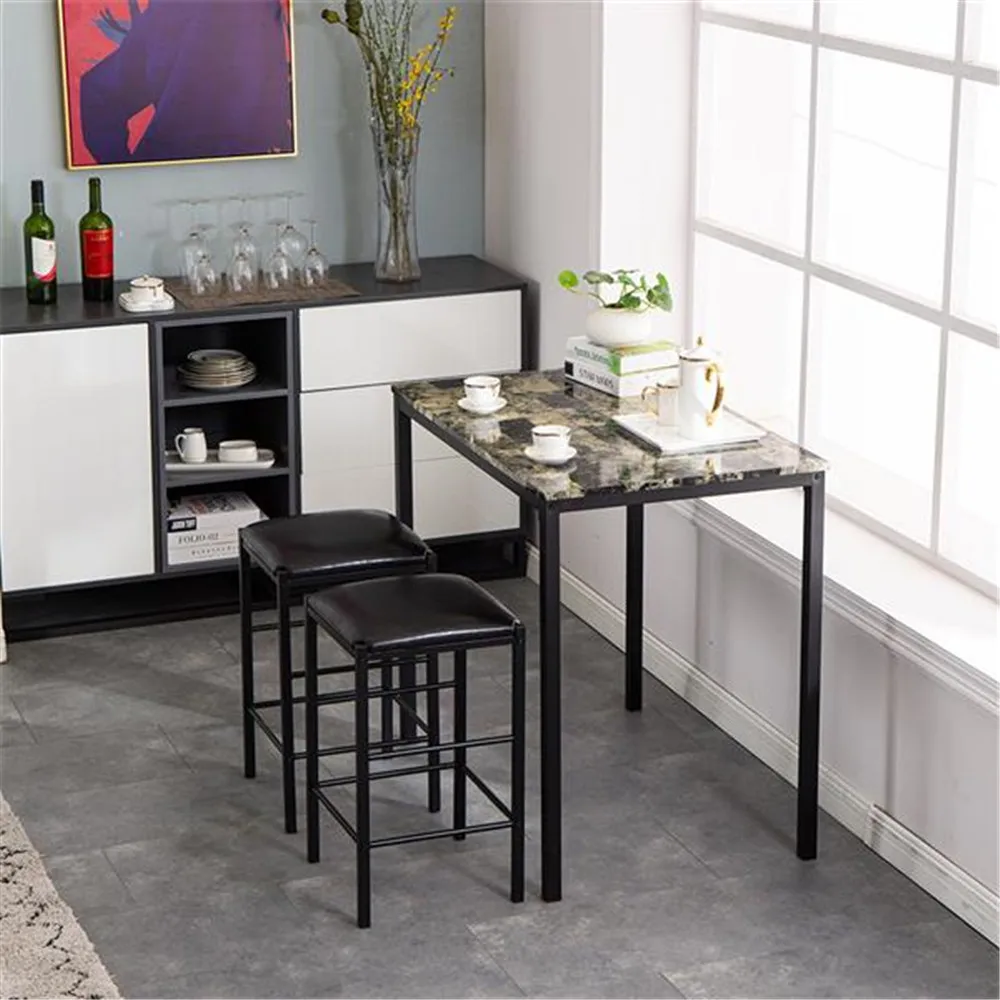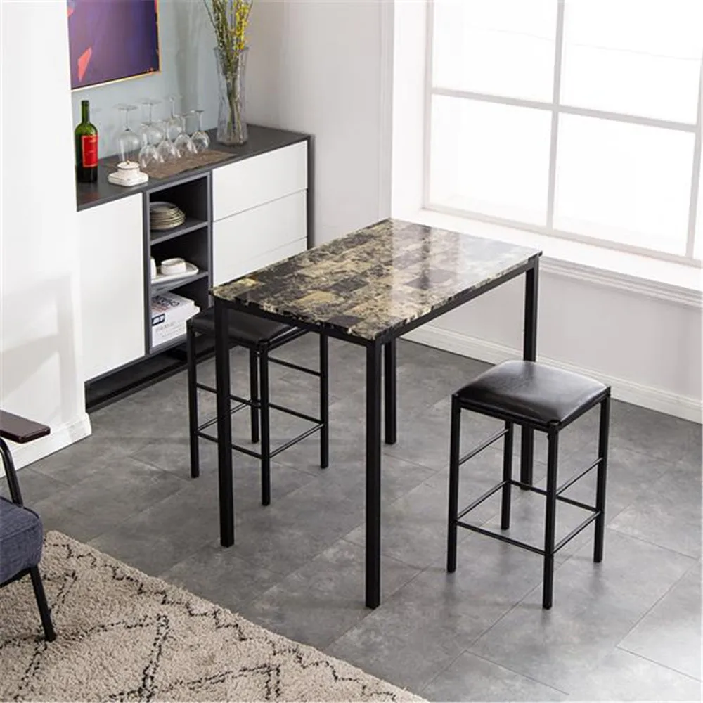 [90x60x82] см высокий обеденный стол с мраморным лицом и подушка для стула черный комплект из 3 предметов 1 стол 2 стула