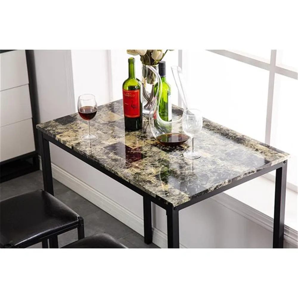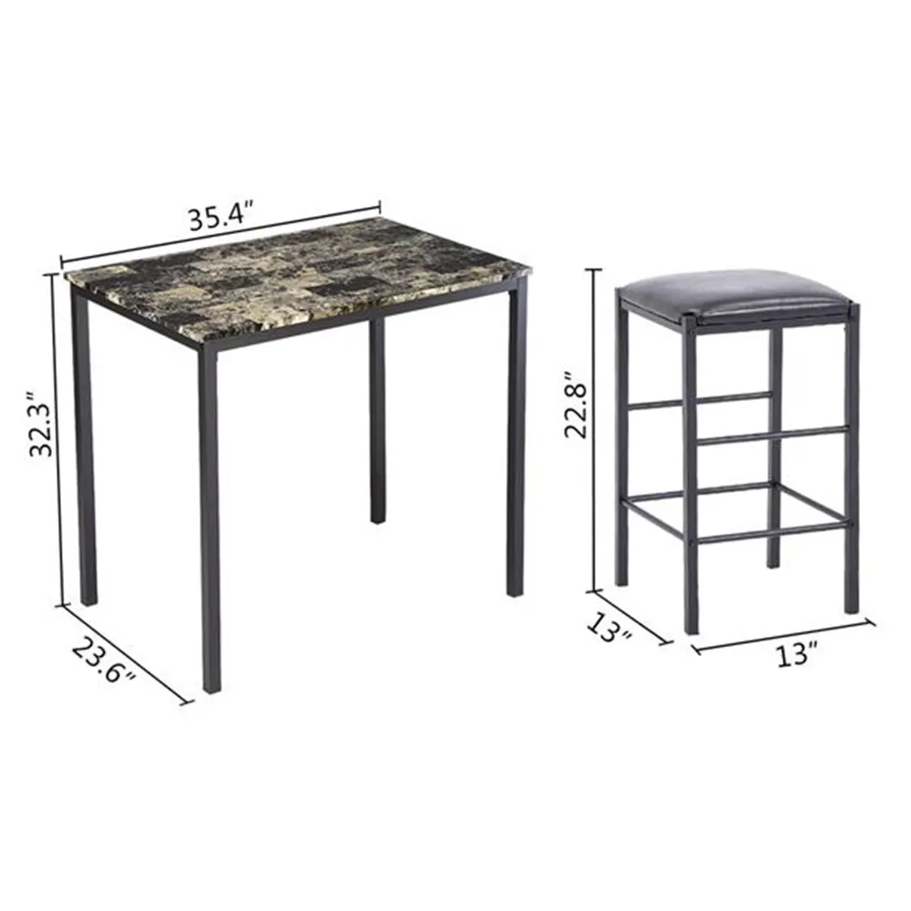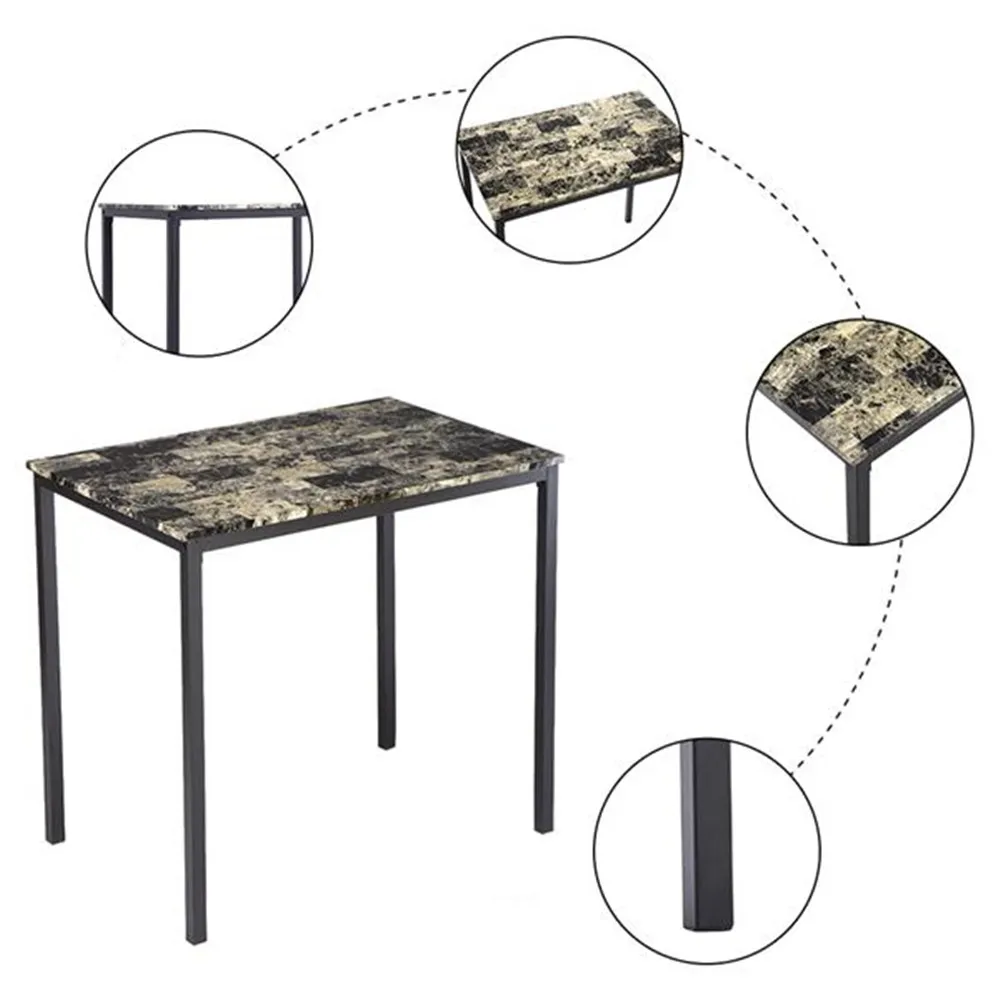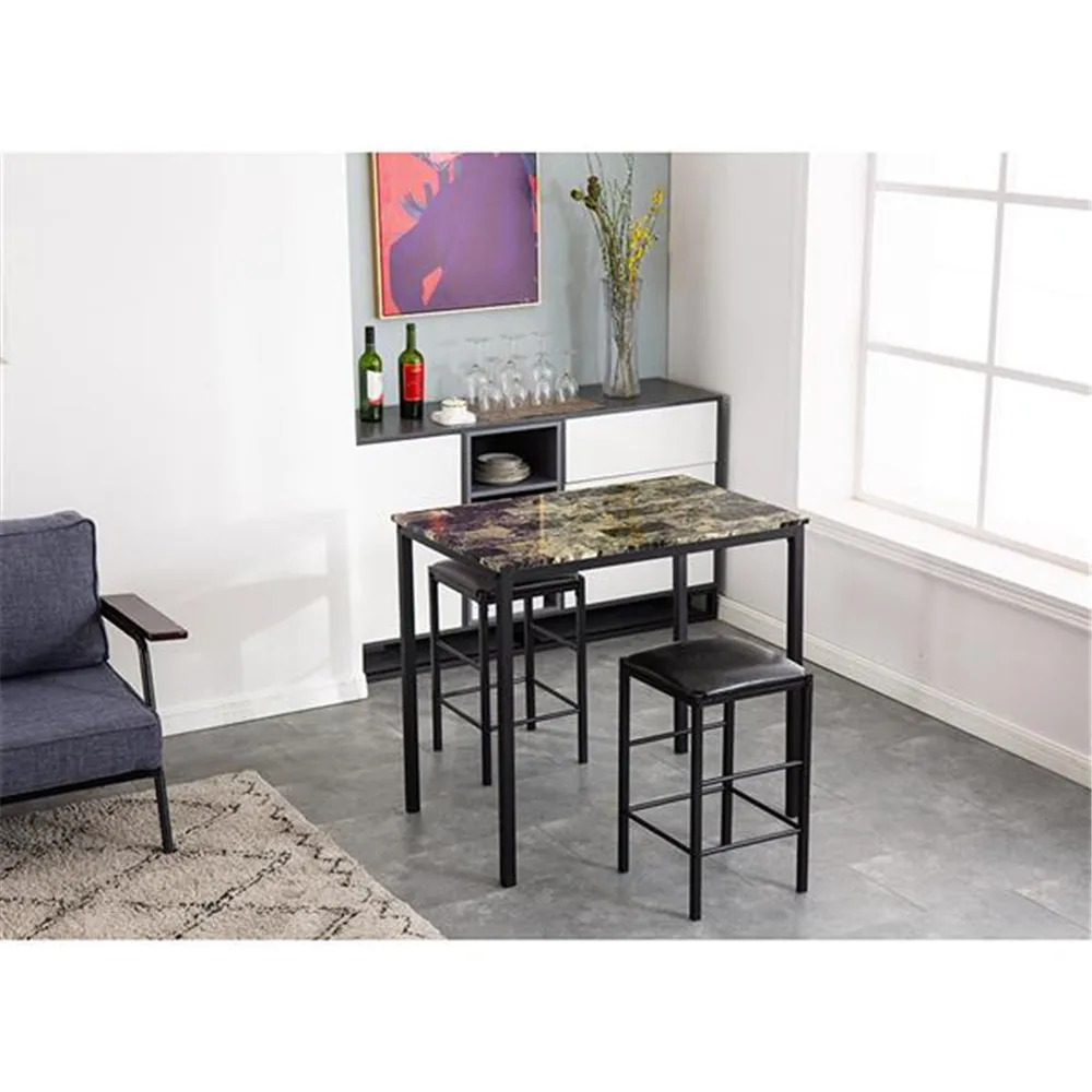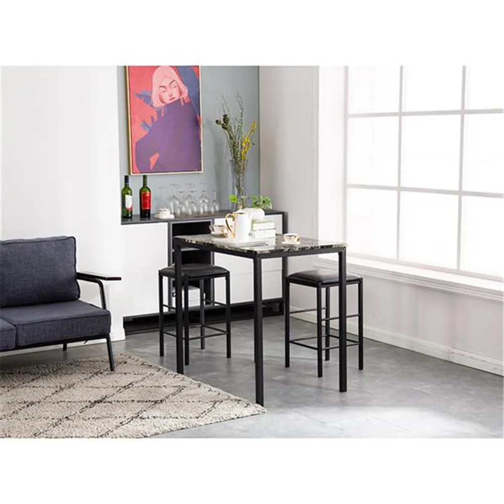 [90x60x82] см высокий обеденный стол с мраморным лицом и подушка для стула черный комплект из 3 предметов 1 стол 2 стула