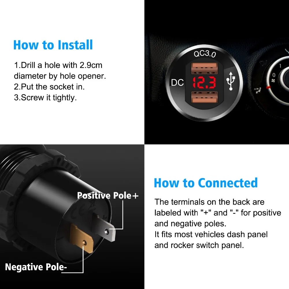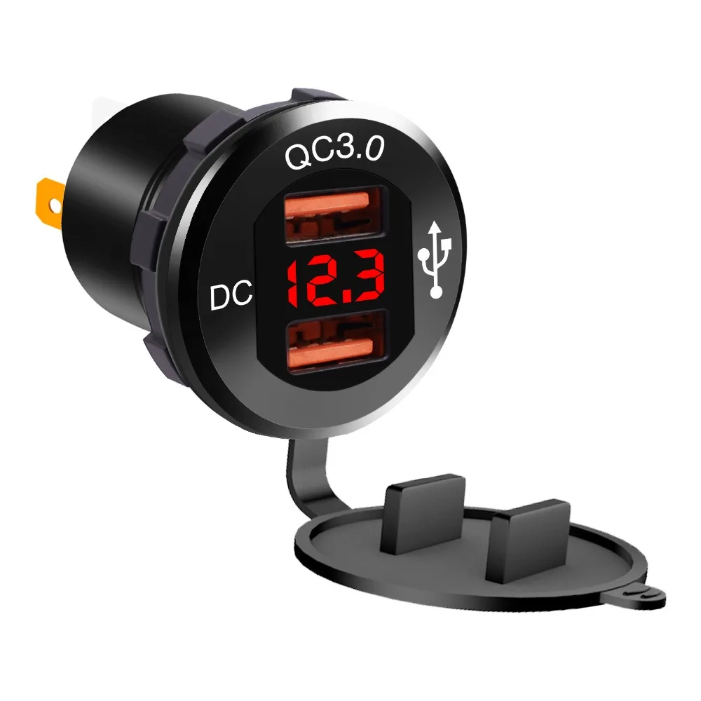 Двойной USB разъем зарядного устройства с вольтметром красный светодиодный светильник QC 3,0 Usb быстрая зарядка для 12-24 В автомобиля лодка морской ATV RV мотоцикл
