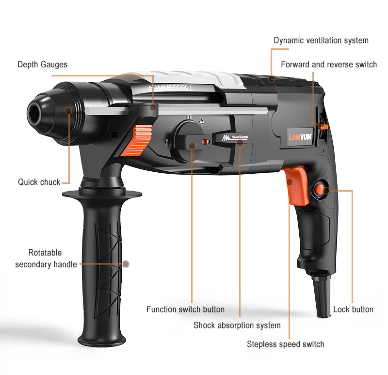 LOMVUM 800 Вт 220 В AC многофункциональная роторная дрель-шуруповерт