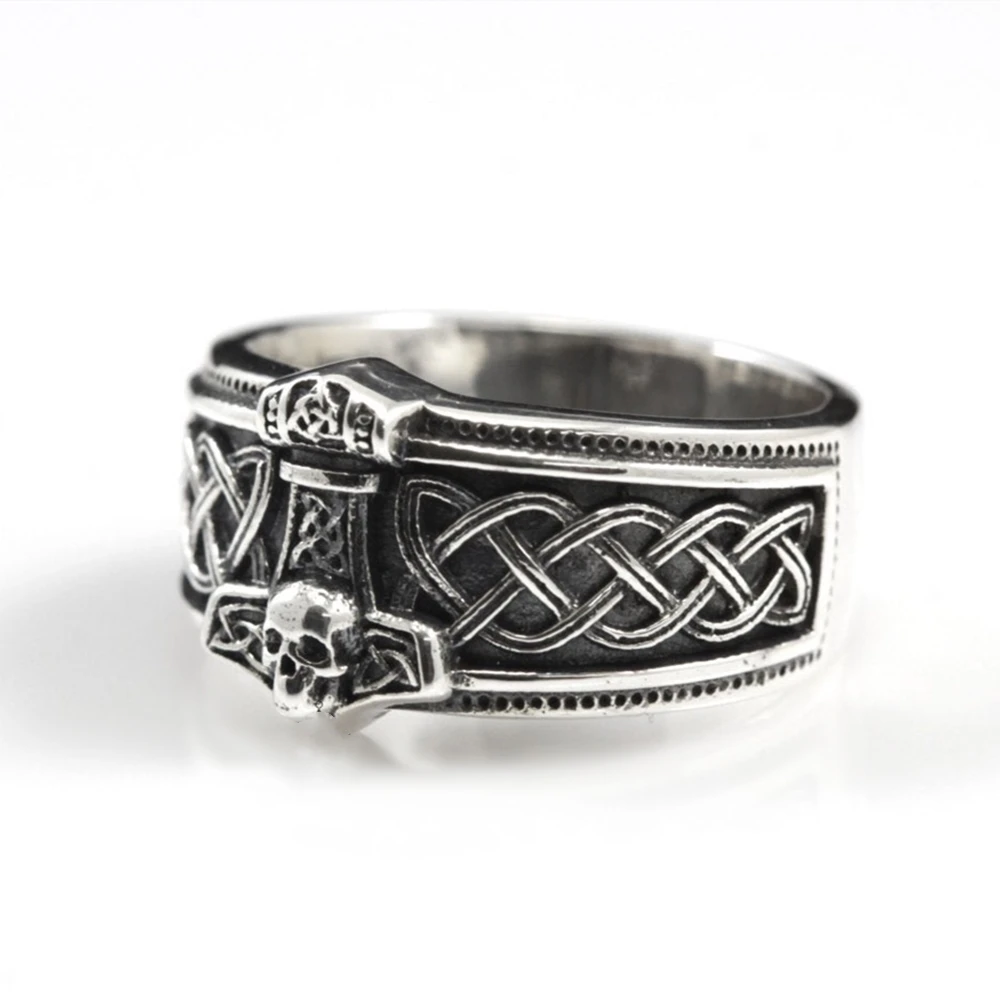 --- Описание продукта ----------- * Стиль: Mjollnir, череп, байкер * Металл: нержавеющая сталь 316L * Цвет: серебро * Количество: 1 шт. * Размер кольца: в наличии размеры США 7,8, 9,10, 11,12, 13 * Обратите внимание: все веса и размеры являются приблизительными. --- Список фото -----------