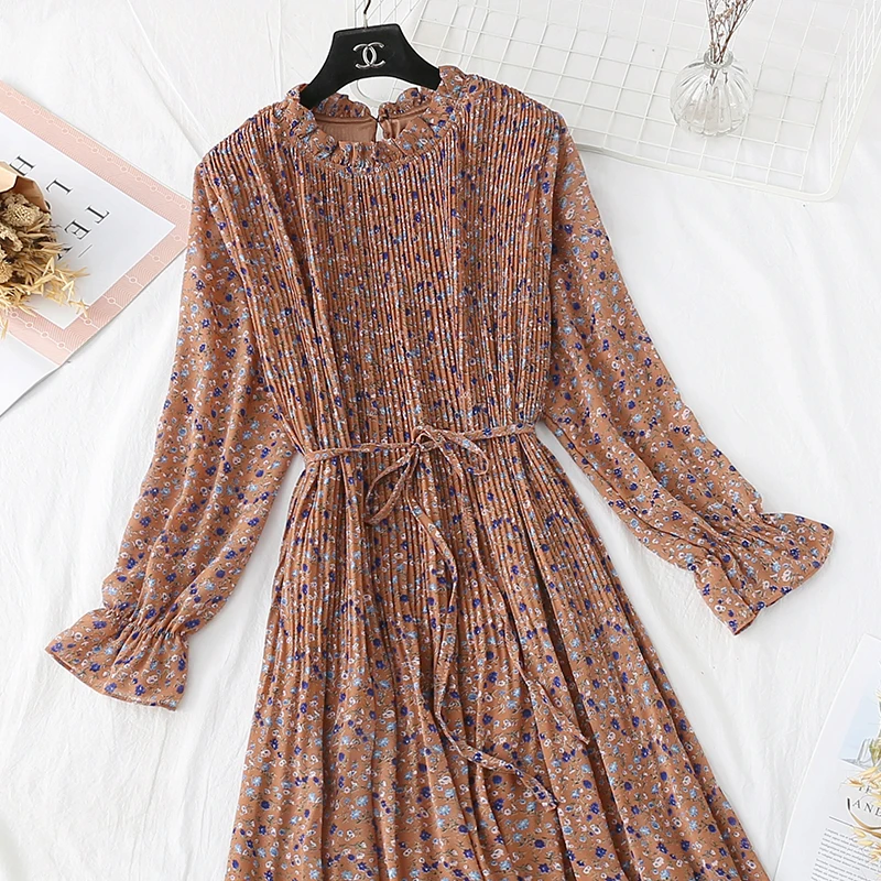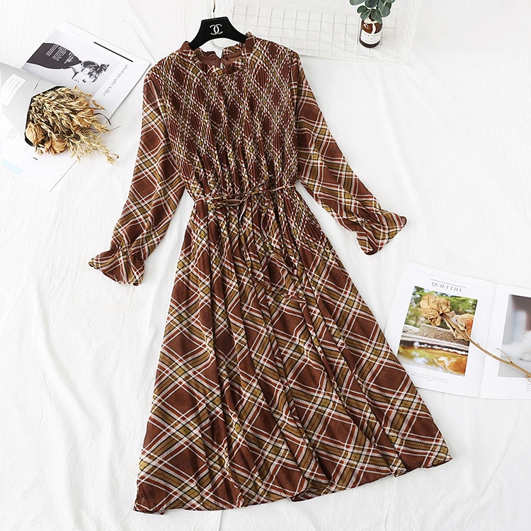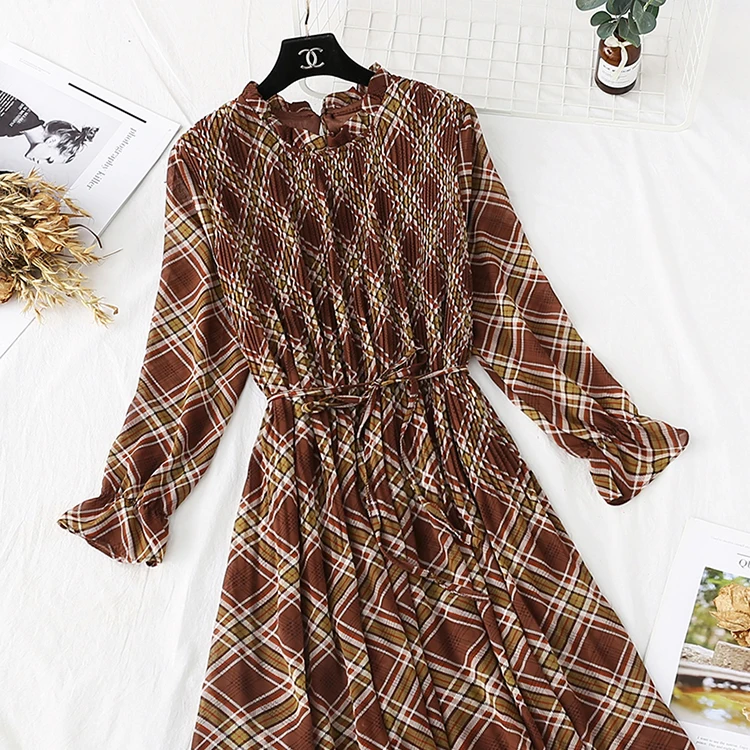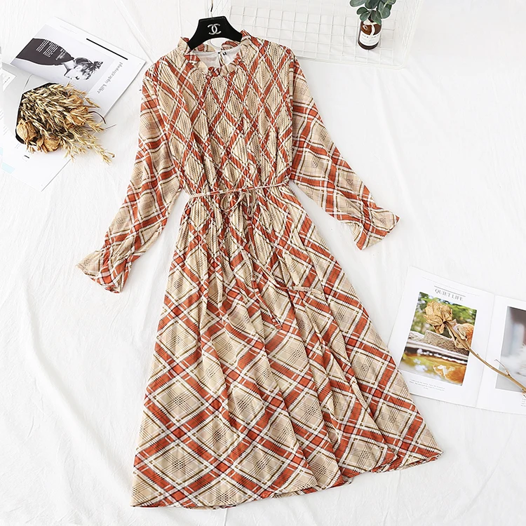 Женское платье с круглым вырезом и карманами Повседневное кафтан в полоску стиле