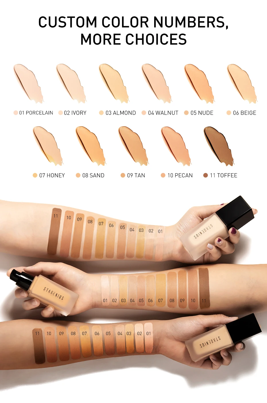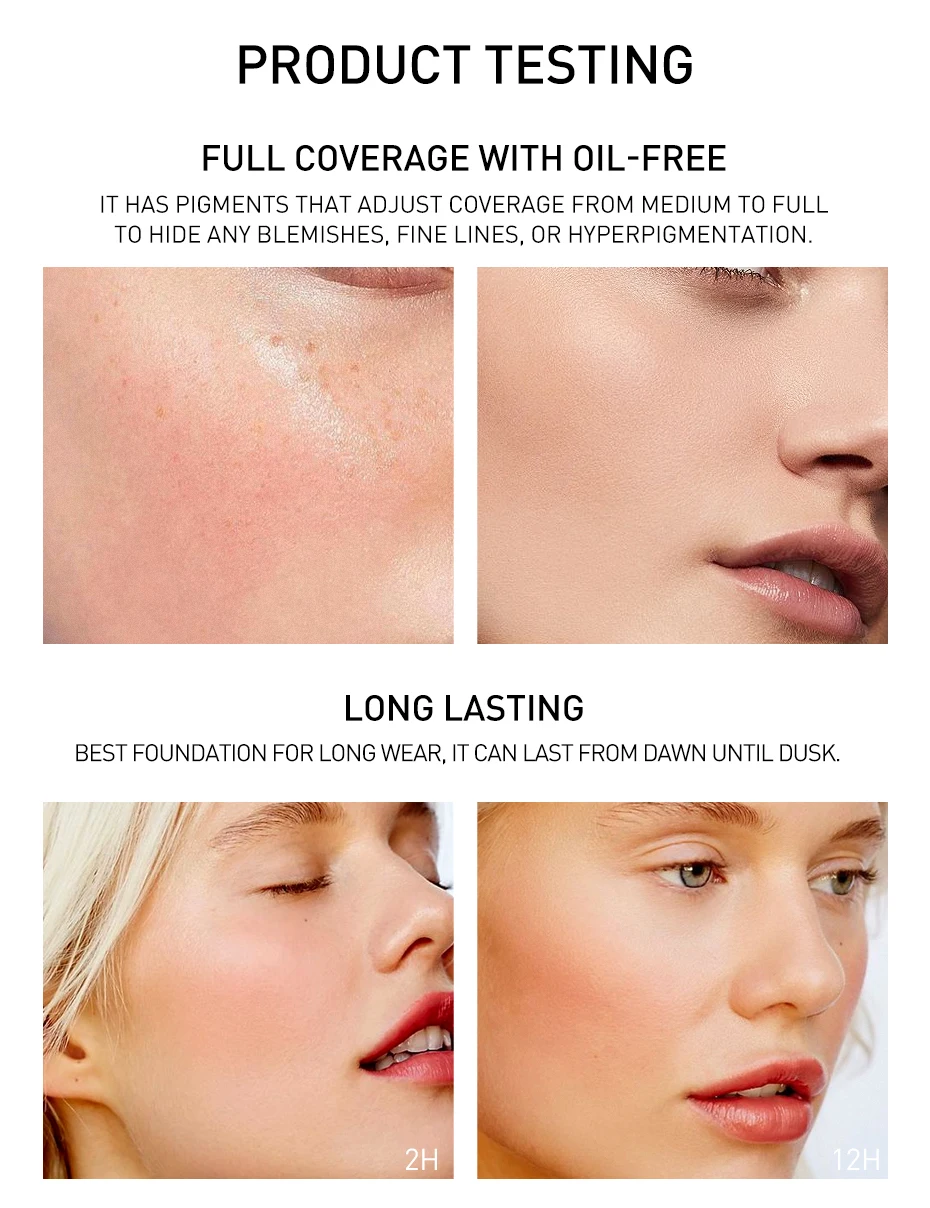 1. Обладает сильной способностью покрывать поры, яркий и гладкий, долговечный в течение всего дня.
