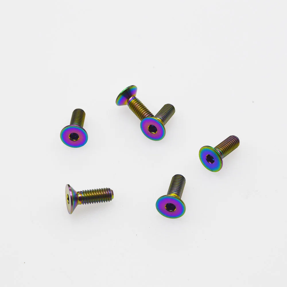 Название продукта: Радуга высокая производительность Gr5 титановый винт рулевого колеса Материал: Gr5 titanium Размер: М5*15 мм Цвет: Упаковка бумажной коробки Класс: 10,9 Техника: кованый станок с ЧПУ