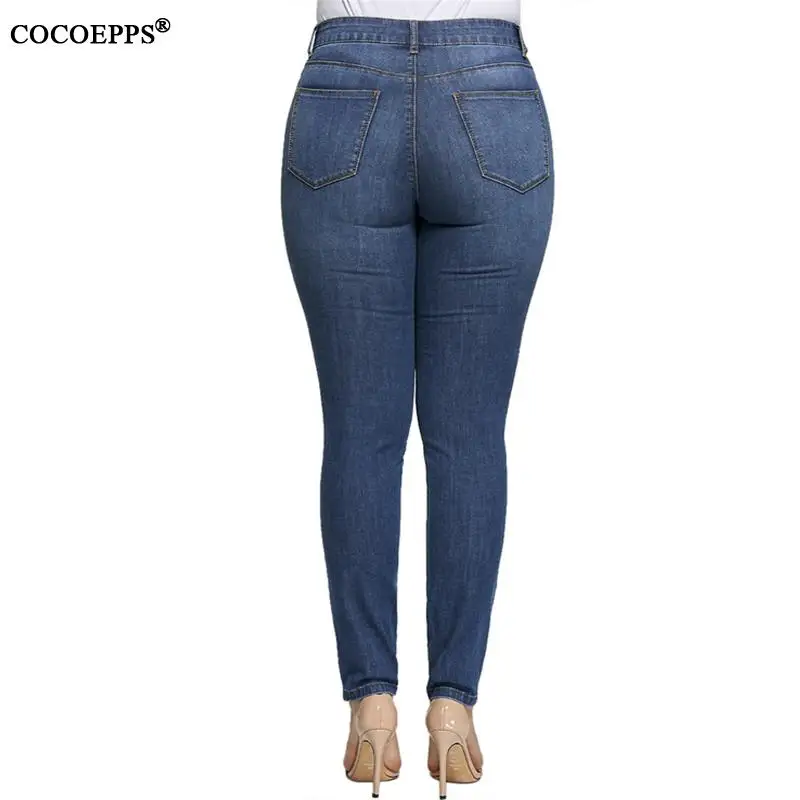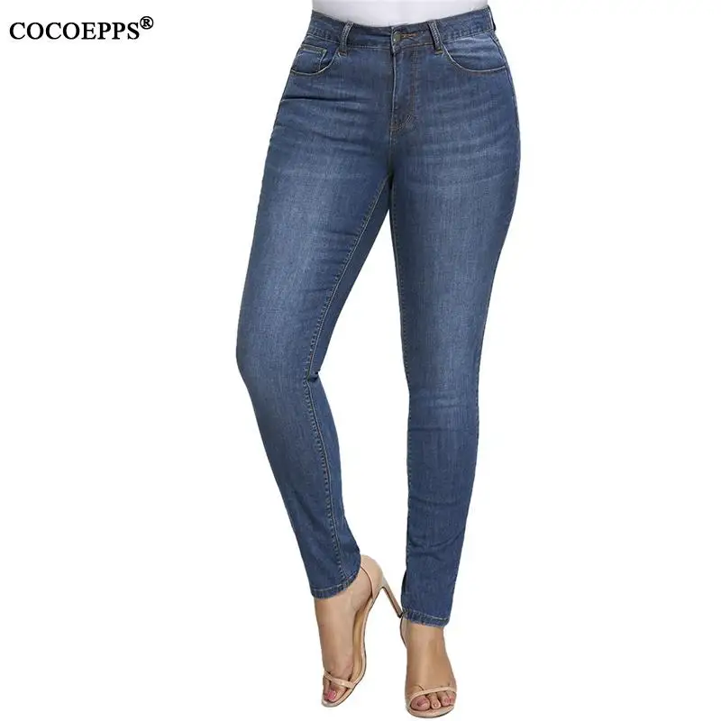 Женские джинсы с завышенной талией синие повседневные эластичные джинсовые
