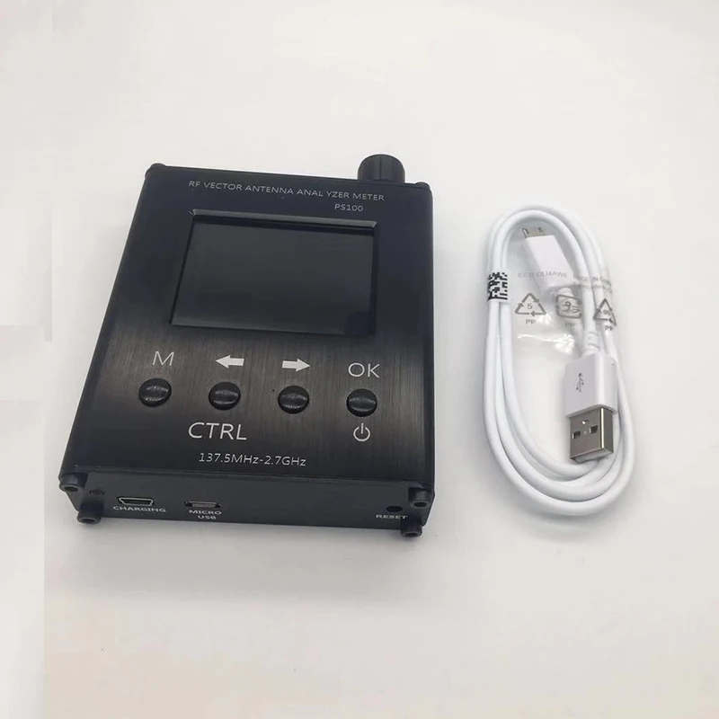 -Модель: PS100 -Рабочая валюта 137,5 МГц ~ 2700 МГц -Ступенчатая частота 1 кГц -Дисплей 2.4cun TFT trdp -Соотношение разрешения 320*240 (QVGA) -Емкость аккумулятора: 2000 мАч (7.4Wh) -Энергопотребление <1,5 Вт -Ток зарядки 400 мА -Зарядный порт USB -Автоматическое отключение можно установить 5-60 минут -Измеренные параметры сопротивления reactance стоящая волна s11 -Соотношение разрешения 4 число -Точность частоты около 5ppm -Разъем SMA-K -Диапазон измерения сопротивления: 0,1 ~ 1000 -Диапазон измерения стоячей волны: 1,000 ~ 65 -S11 (дБ) Диапазон измерения: 0 дБ ~-60 дБ -Рабочая температура: 0 ~ 40 градусов -Атмосферное давление: 860hPa ~ 1060hPa