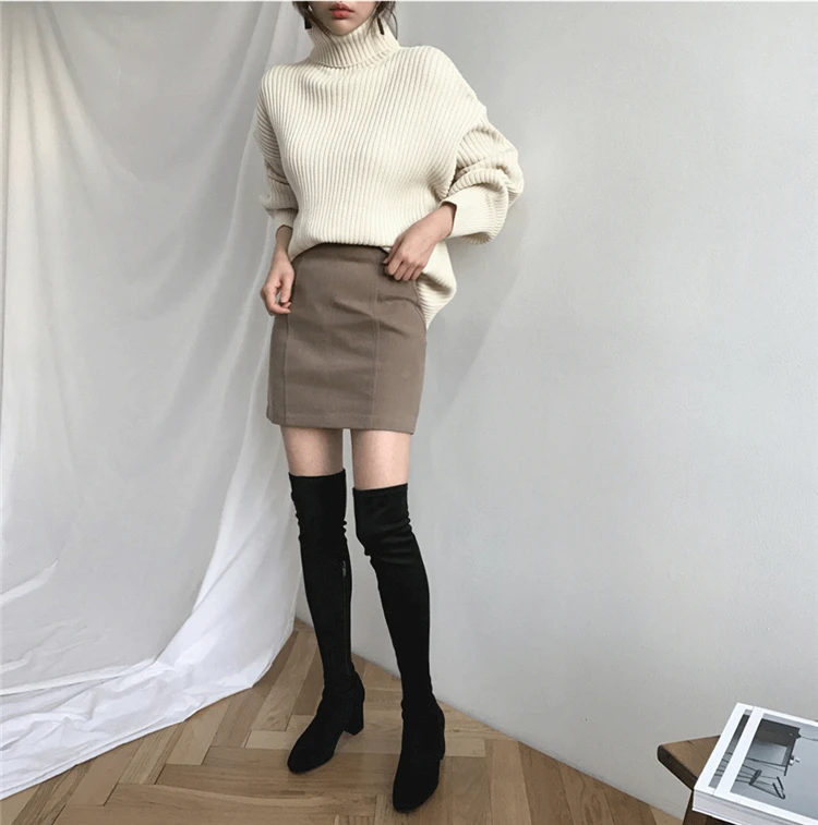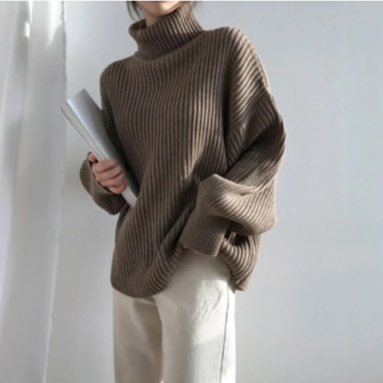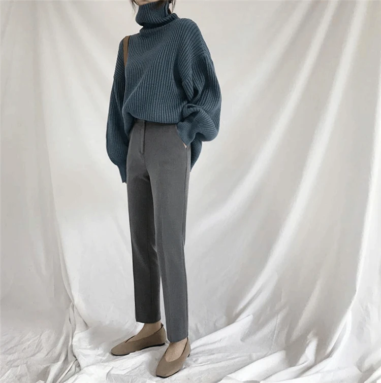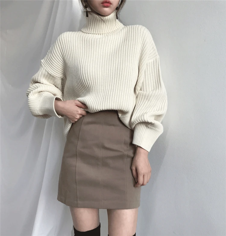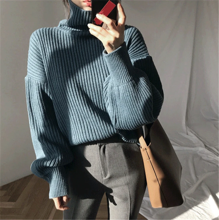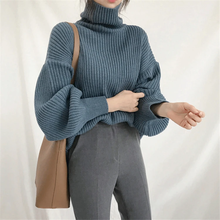 Пуловер женский трикотажный с пышными рукавами и круглым вырезом в Корейском