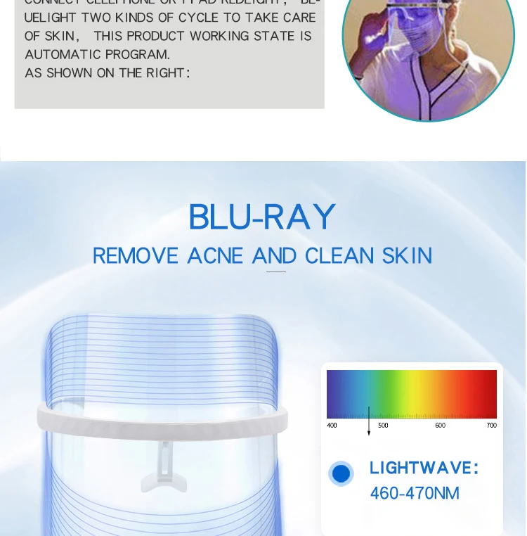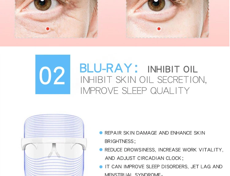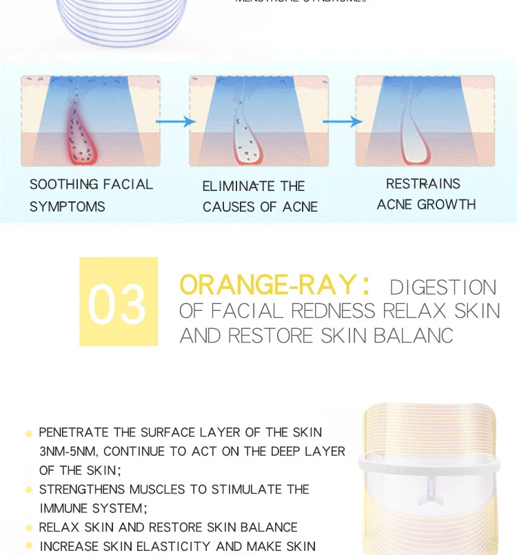 Спецификация: Тип товара: светодиодный пакет для лица Цвет: белый Материал: АБС-пластик Выход: 5 в 1 А Характеристика: Красный Луч: повышает эластичность кожи Улучшает метаболизм кожи 1. Стимулирует выработку коллагена, делает кожу ярче, тем самым уменьшая мелкие морщинки и морщины; 2. Уменьшает поры, улучшает общую яркость кожи, делает кожу гладкой и эластичной, уменьшает веснушки, красную кровь и ускоряет улучшение проблемной кожи и восстановление кожи после солнечных ожогов; 3. Повышает кровообращение лица, блокирует влагу кожи; 4. Ускоряет метаболизм кожи, способствует нежной коже ребенка; 5. Для уменьшения покраснения акне и укрепления кожи, эффект замечательный. Blu-Ray: подавляет масло Подавляет секрецию масла кожи, улучшает качество сна 1/восстановление повреждения кожи и повышение яркости кожи; 2/уменьшает сонливость, повышает жизненную силу работы и регулирует циркадные часы; 3/это может улучшить расстройства сна, задержки струи и менструального синдрома. 4/успокаивающие признаки лица 5/устранение причин акне 6/предотвращает рост акне Оранжевый Луч: пищеварение покраснения лица Расслабляет кожу и восстанавливает кожу balanc 1/проникает в поверхностный слой кожи 3nm-5nm, продолжает действовать на глубокий слой кожи; 2/укрепляет мышцы для стимуляции иммунной системы; 3/расслабляет кожу и восстанавливает баланс кожи 4/повышает эластичность кожи и делает кожу более твердой 5/ремонт тусклой и тусклой кожи, сохраняет кожу нежной 6/устранение грязи и осветления меланина Как использовать: 1. Очистите лицо. 2. Нанесите светодиодный масок для лица. 3. Наденьте светодиодный маску лица и выберите желаемый цвет. 4. Отделка.(15-20 минут) Примечание: 1. Включите питание после подключения всех соединений. 2. Электрическая цепь внутри устройства не должна быть нажата или сложена, и она должна быть установлена на плоской подошве, чтобы быть должным образом защищена после использования. 3. Пожалуйста, будьте осторожны, что тяжелые вещи не помещаются поверх него. Советы: Каждый день, 15 минут/раз. Рекомендуется использовать с светодиодный маской/эссенцией лица. Продукт включает: 1 x светодиодный массажер для лица 1 x USB 1 х Руководство 1 x коробка
