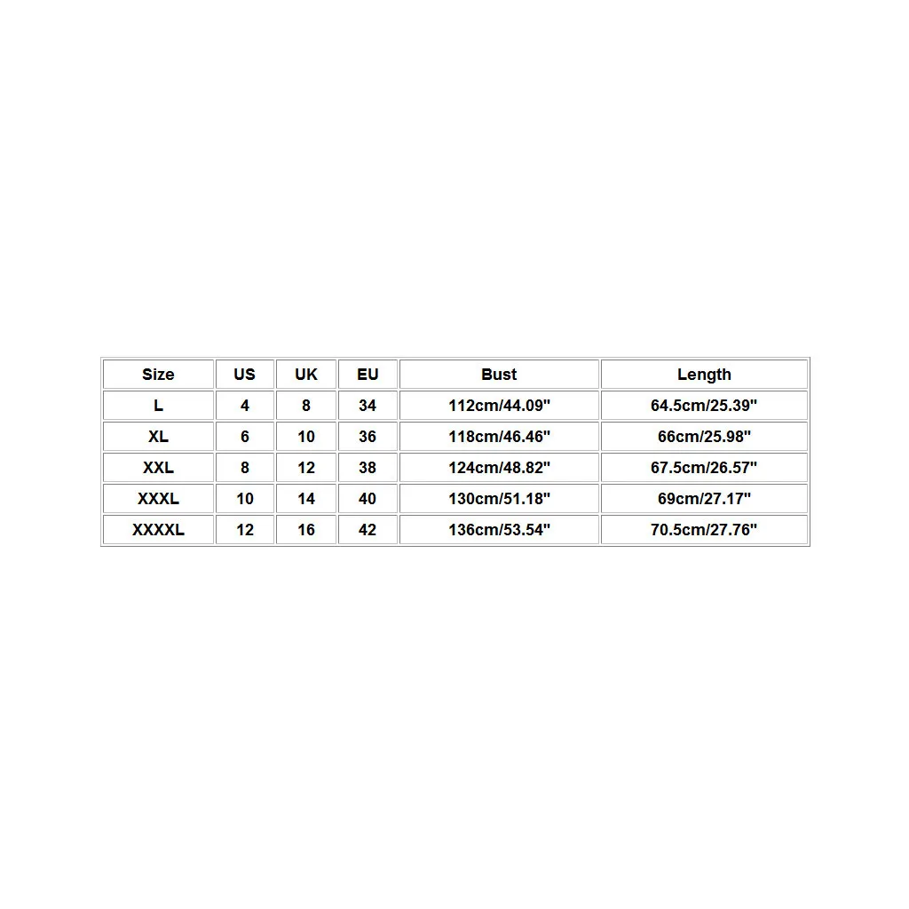 | XXXXL | 12 | 16 | 42 | 136 см/53,54'' | 70,5 см/27,76'' |