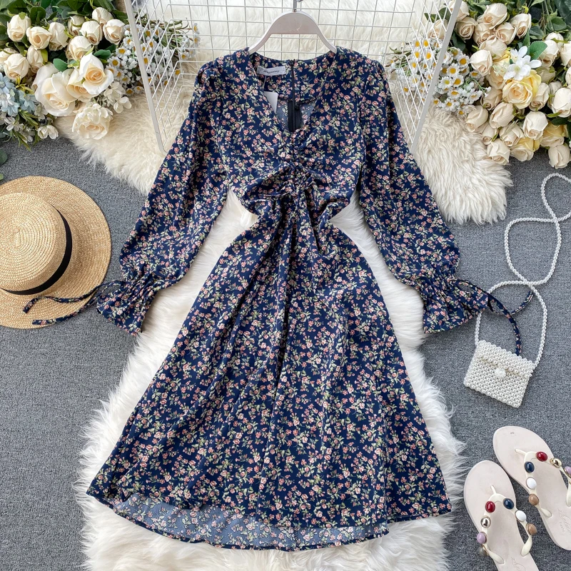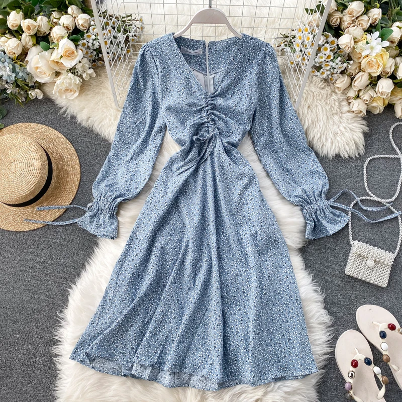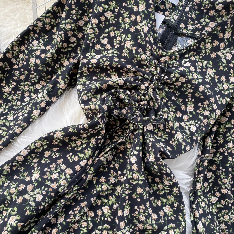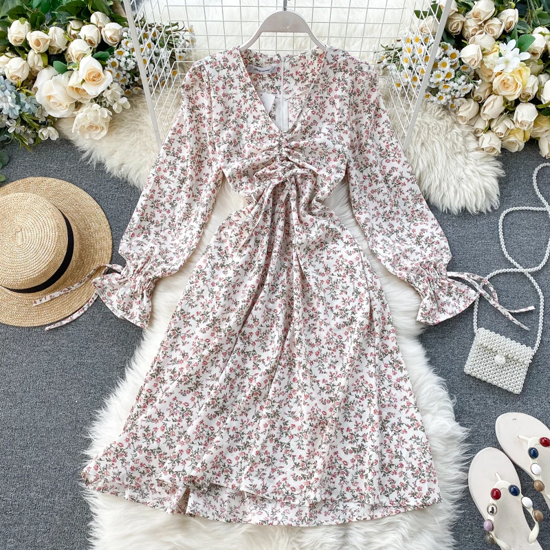 Женское летнее платье в полоску белое мини с пышными рукавами и оборками