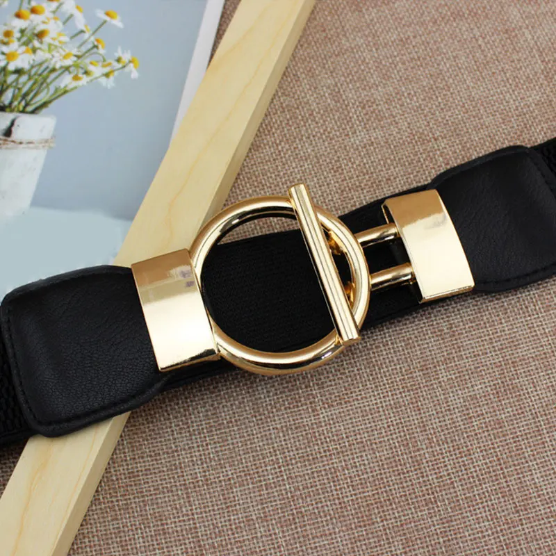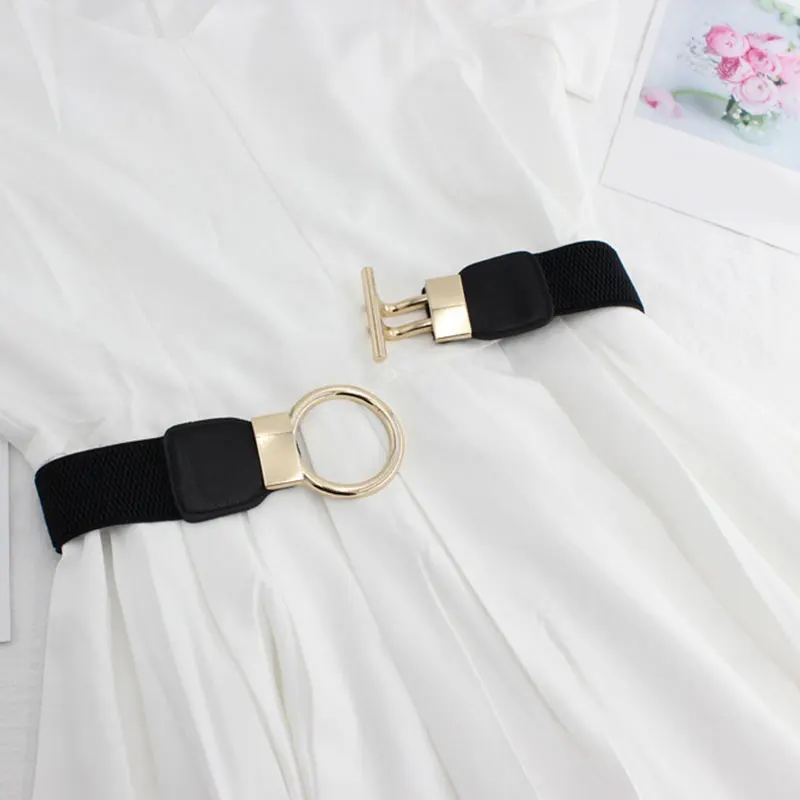 Женское платье с поясом, украшенное простым рукавом, эластичный пояс с золотой пряжкой, широкие ремни