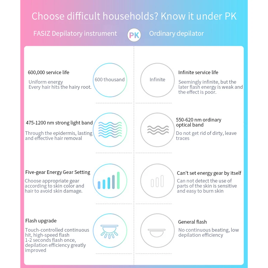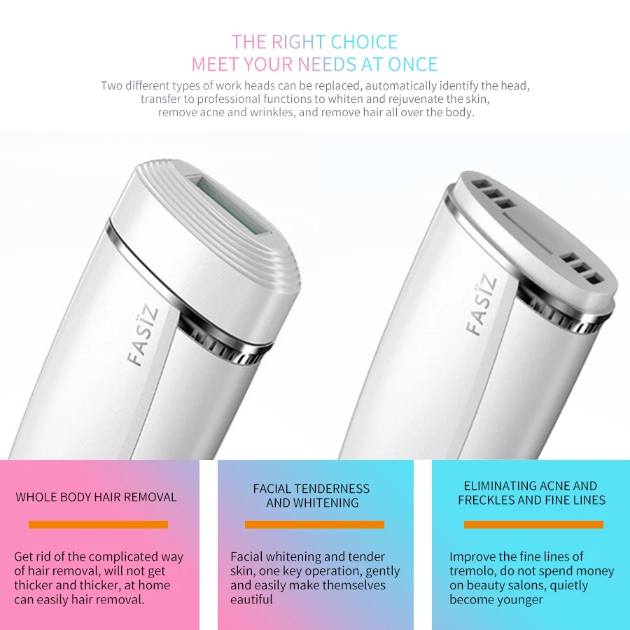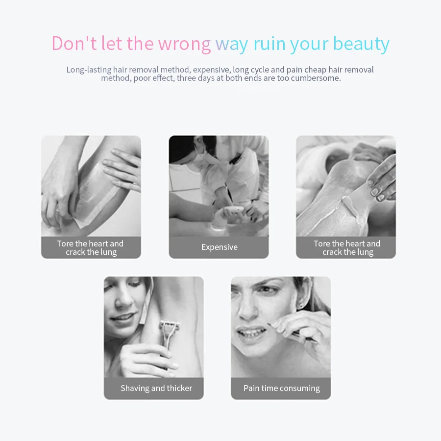 1; IPL Удаление волос имеет новейшую технологию интенсивного импульсного светильник, который клинически протестирован для постоянного уменьшения волос, что делает вас испытать профессиональное удаление волос в домашних условиях. Это средство для удаления волос IPL может предотвратить рост волос, благодаря чему вы будете наслаждаться шелковой гладкой кожей каждый день. Система IPL является отличным решением для домашнего использования для удаления нежелательных волос, вместо постоянного воска, бритья или выщипывания, также защищает вашу частную жизнь. 2; IPL Фотоэпилятор с пятью регулируемыми уровнями настроек для ваших различных потребностей. В комплект входит пара защитных очков для защиты глаз. Вы можете наслаждаться 90% уменьшением волос после 6-12 процедур. Если вы ищете устройство для удаления волос IPL, это устройство для удаления волос IPL здесь вам поможет. 3; не только удаление волос (HR), но и омоложение кожи (SC) Эта продукция 3 в 1 IPL машина для удаления волос, поставляется с высококачественной 450000 вспышкой (HR) для удаления волос кварцевой лампой, которая имеет длительный срок службы лампы (до 20 лет использования), и 150000 вспышка (SC) Омоложение кожи стеклянная лампа (бесплатный подарок). Это всего 600000 вспышки для использования. Вы можете не только наслаждаться эпиляцией, но и делать домашние дефекты для омоложения кожи, помогая вернуть коже эластичность, устранить или уменьшить морщины, сузить поры. Просто замените различные функциональные лампы при использовании. Это экономичные и Многофункциональные косметические приборы для ухода за кожей для домашнего использования.