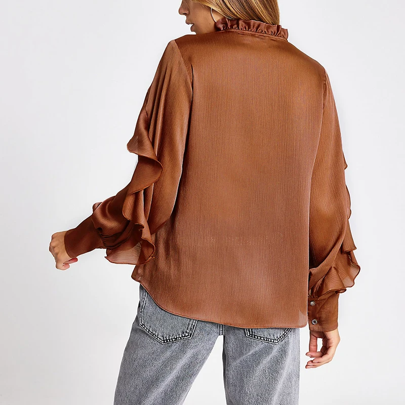 Kissmilk 2020 Осенняя модная простая Женская Однотонная рубашка с оборками и длинным