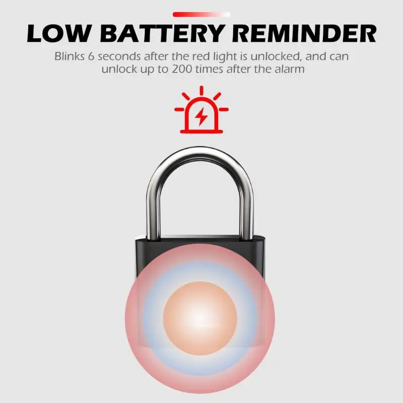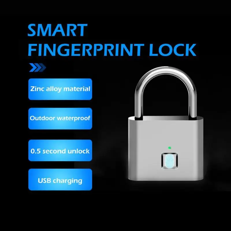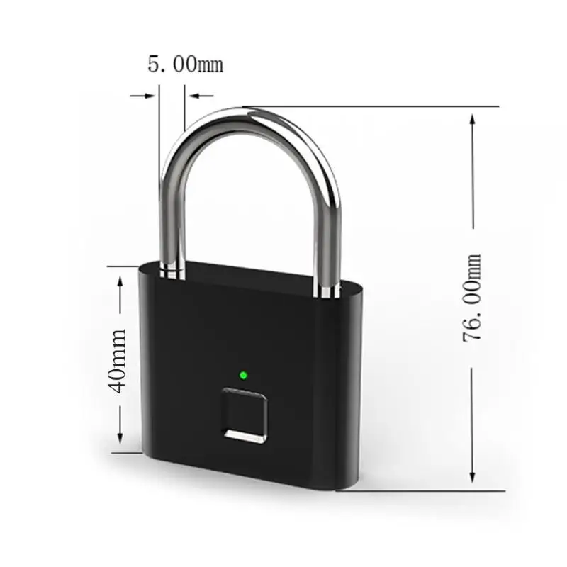 Умный Замок без ключа с отпечатком пальца USB Перезаряжаемый замок из цинкового сплава с защитой от кражи для дверного ящика Чехол для багажа чехол для костюмаТехнические характеристики: Цвет корпуса замка: черный/серебристый Материал изделия: цинковый сплав Размер изделия: корпус замка: 46*40*16 мм/1,81*1,57*0,63" Диаметр луча замка: 5 мм/0,20" Вес нетто продукта: около 98 г Отпечатков пальцев Форма: квадратный Отпечатков пальцев площадь: 10,4*10,4 мм/4,09*4,09" Емкость отпечатка пальца: до 10 Светодиодный светильник: трехцветный светильник (красный/синий/зеленый) Батарея: 3,7 V литиевая батарея Батарея Рабочее напряжение: 3,0-4,2 V Зарядка + аварийный Интерфейс USB: Micro Сигнализация с низким энергопотреблением: Красный светильник мигает через 6 секунд после разблокировки (может быть разблокирован не более 200 раз после сигнала тревоги) Время работы от аккумулятора: один год Рабочая температура: -10 ~ + 40 градусов Цельсия Примечания: 1. Возможны незначительные отклонения в размере из-за ручного измерения, различных методов измерения и инструментов. 2. Изображение может не отражать фактический цвет изделия из-за различных фотографирования светильник, угол и дисплей монитора.
