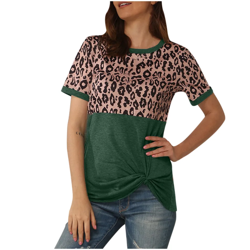 Женская леопардовая цветная полосатая футболка с коротким рукавом и круглым вырезом, повседневный Топ